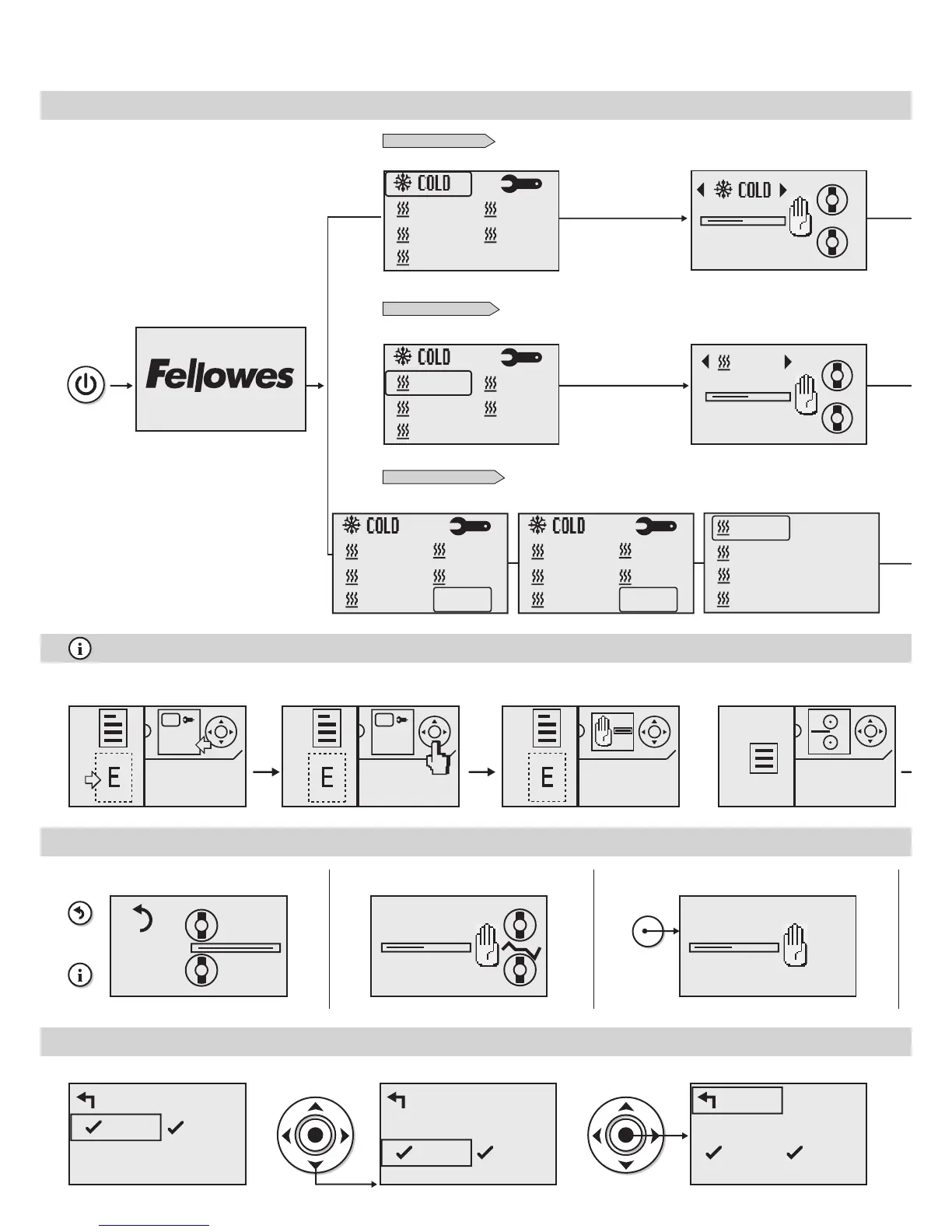Podczas użytkowania laminatora w tle na ekranie będzie wyświetlana seria animacji, ilustrując dany etap.