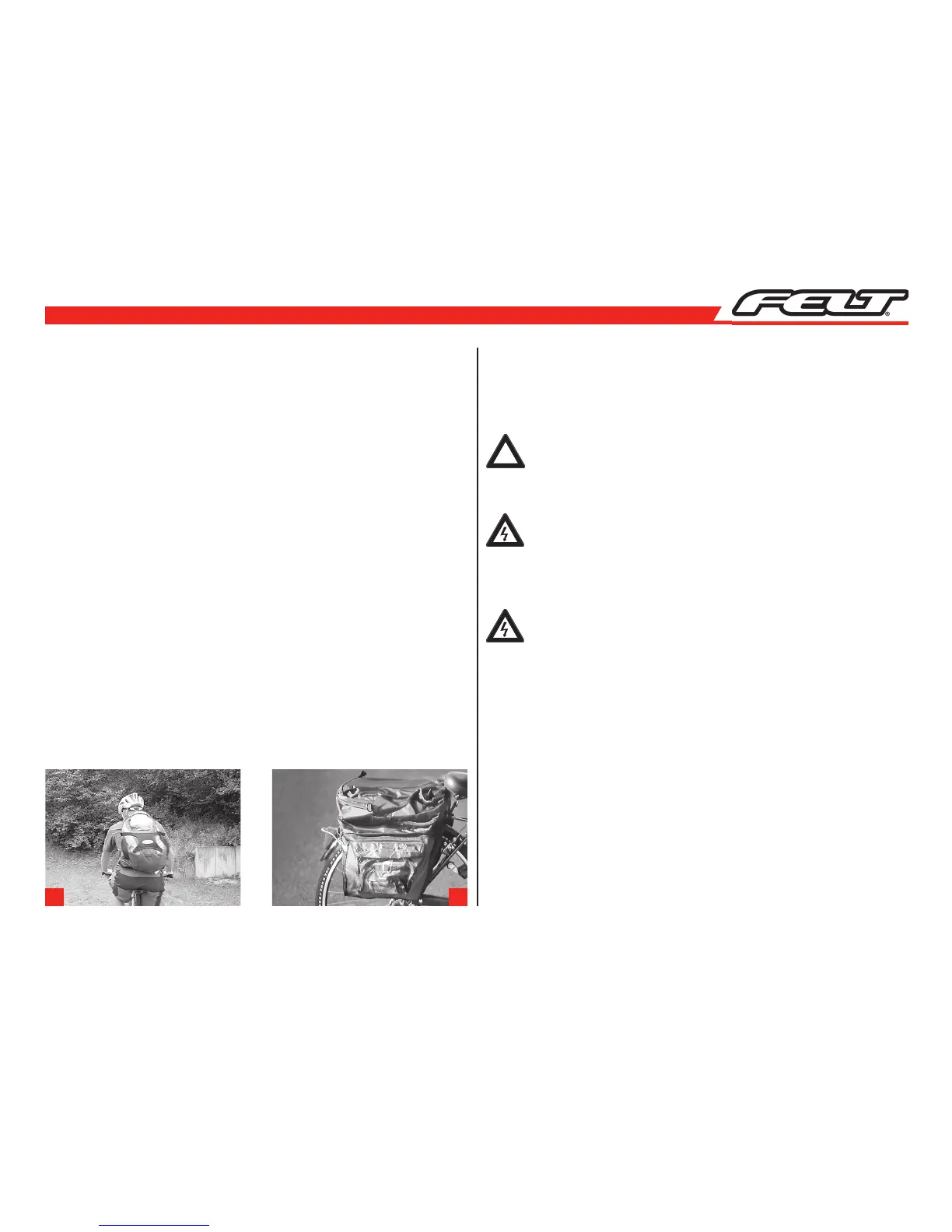 Do not overload your FELT bike and observe the maximum load bearing