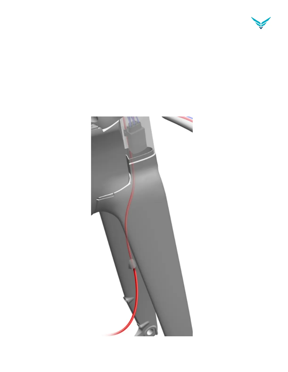 into the fork and feed the hose upwards. The hose should exit behind the front headtube cover. See