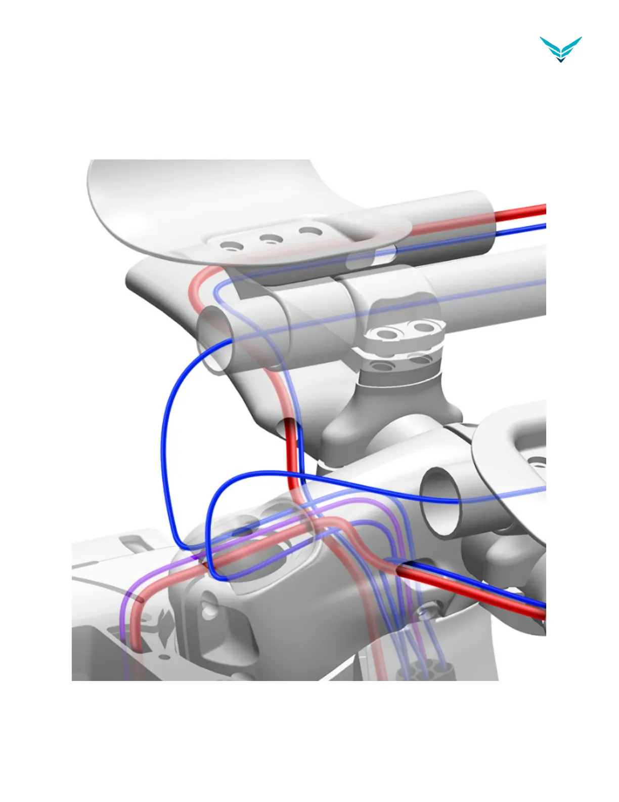 Feed the hose into the stem, then out and into the basebar. Route the hose to the brake lever. Here