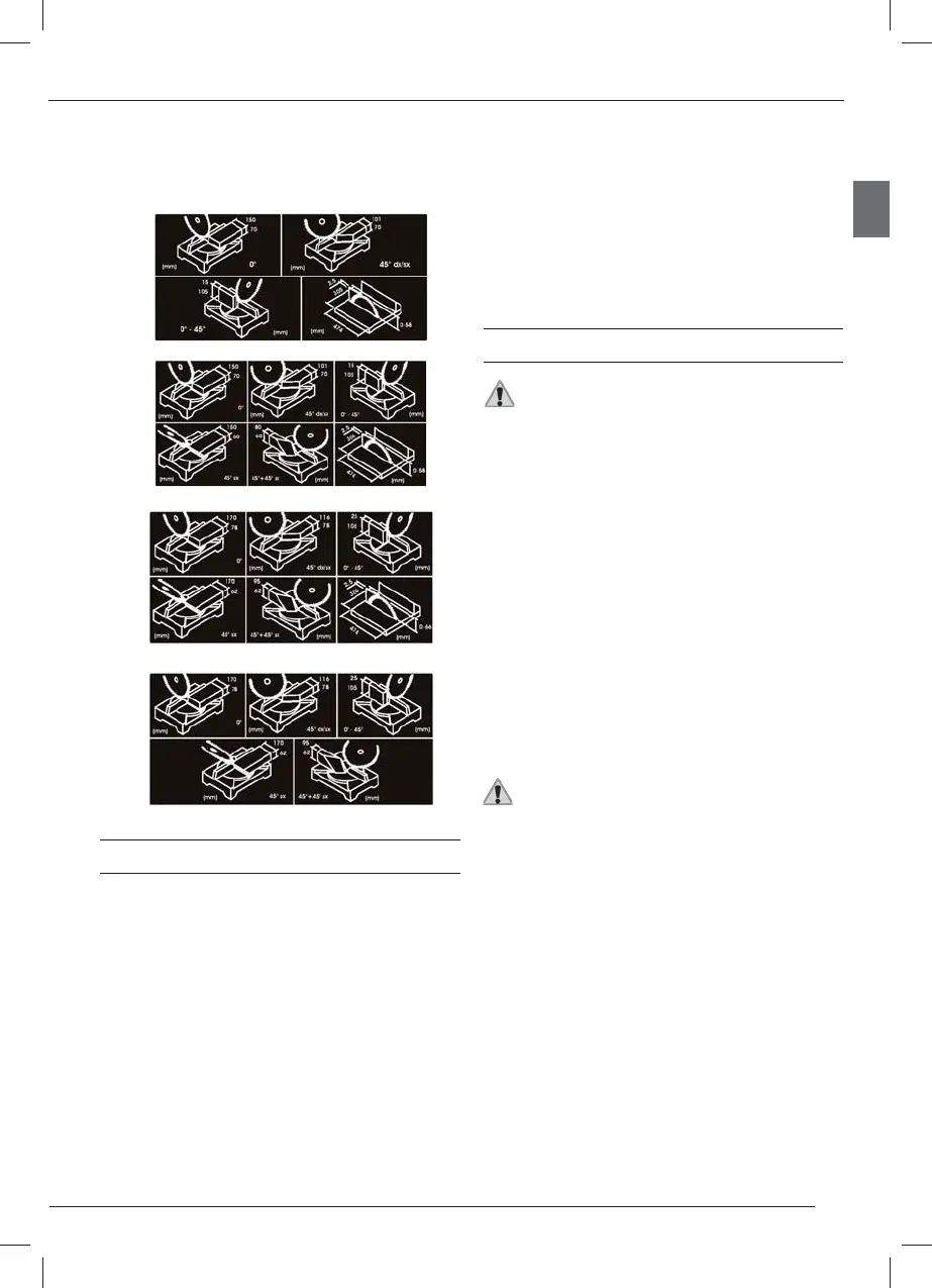 The following tables specify the cutting capacity at 0° and