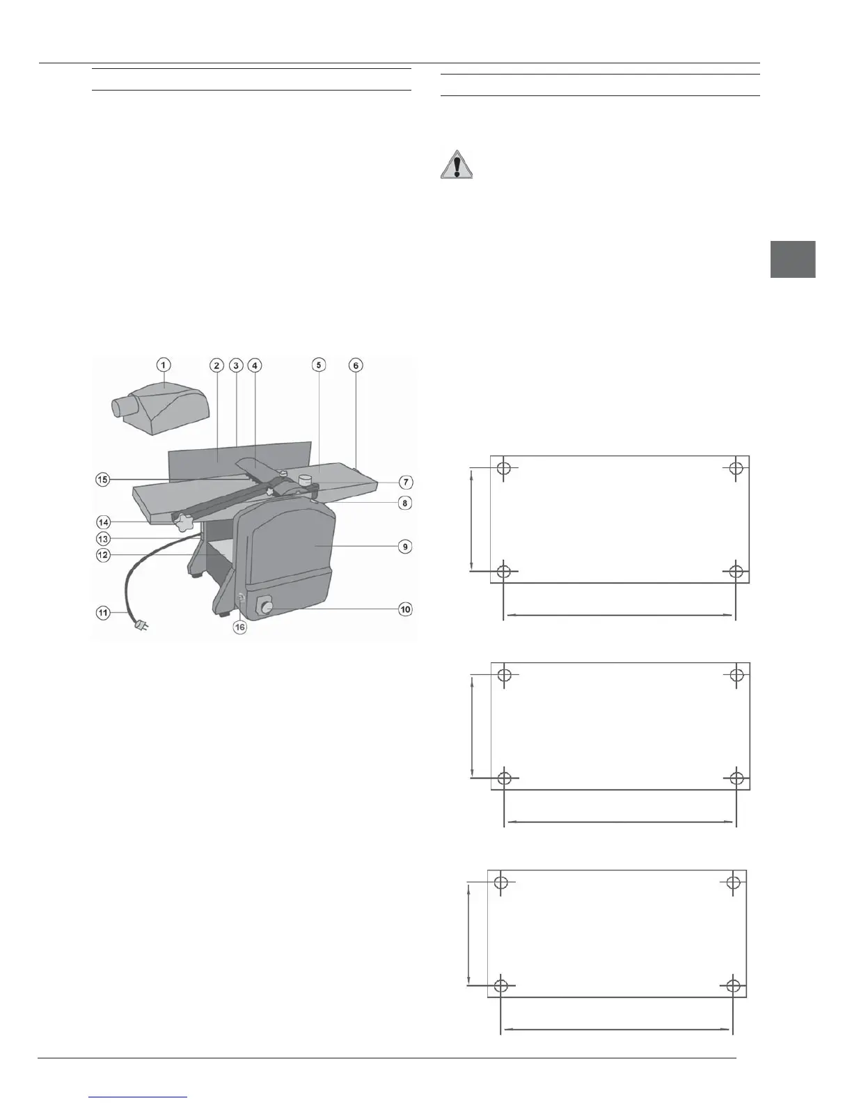 7. Réglage en hauteur de la table de dégauchissage