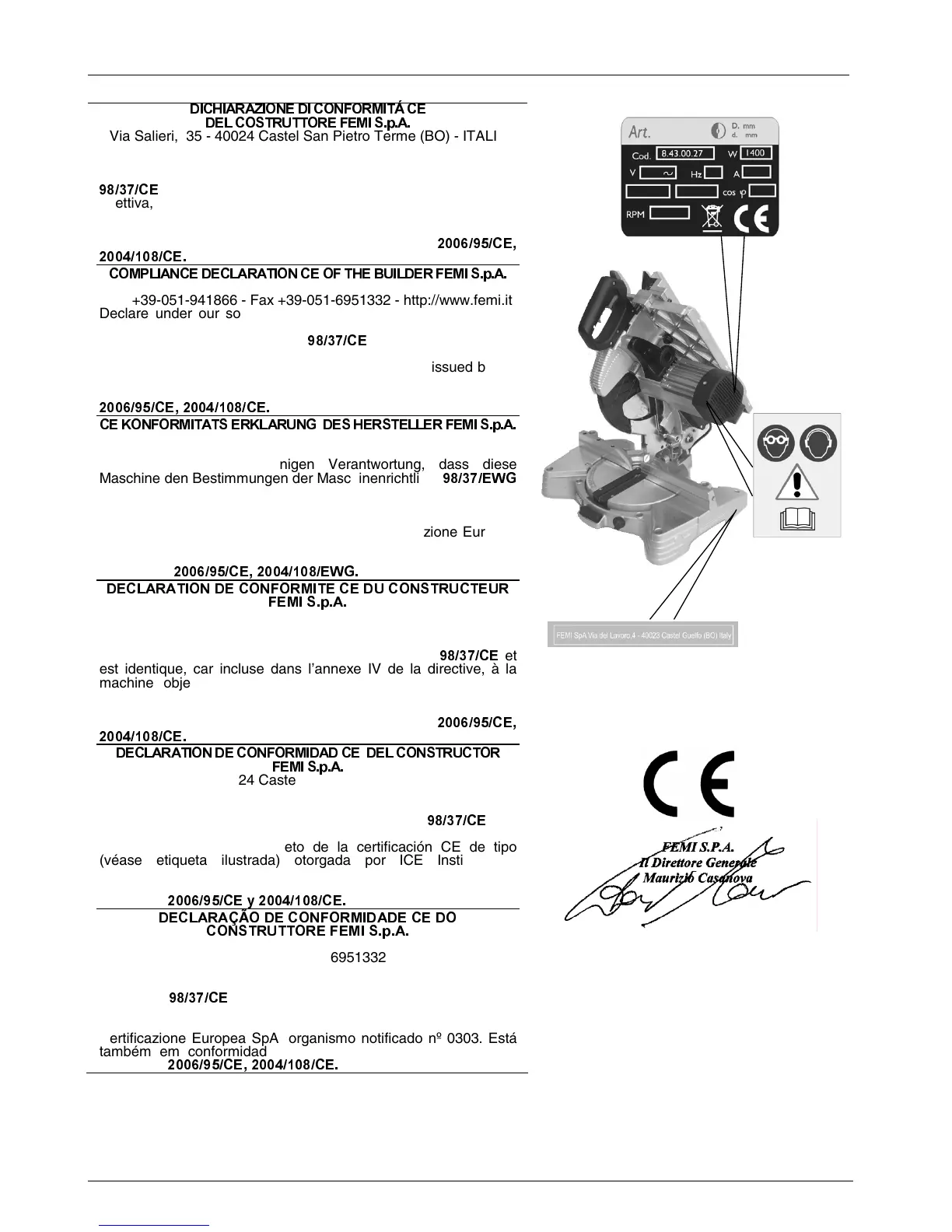 Tel. +39-051-941866 - Fax +39-051-6951332 - http://www.femi.it