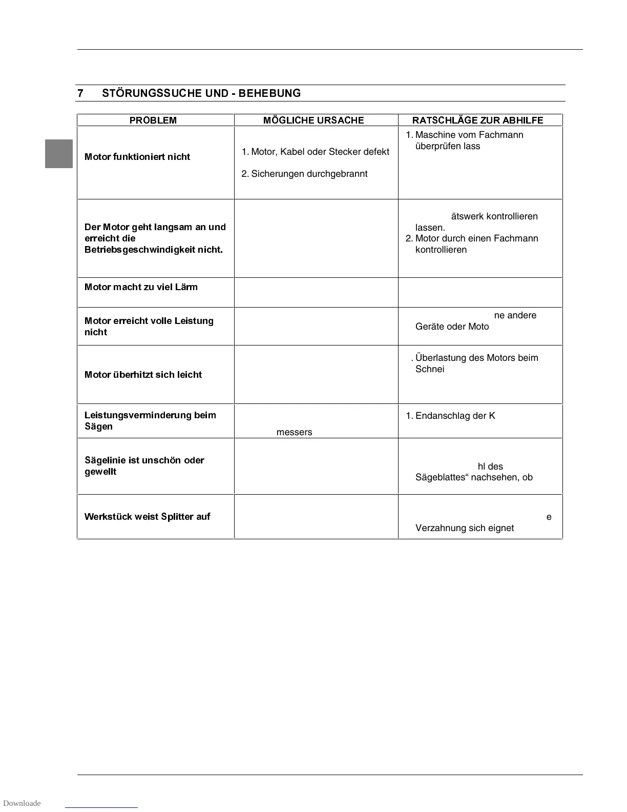1. Motor, Kabel oder Stecker defekt