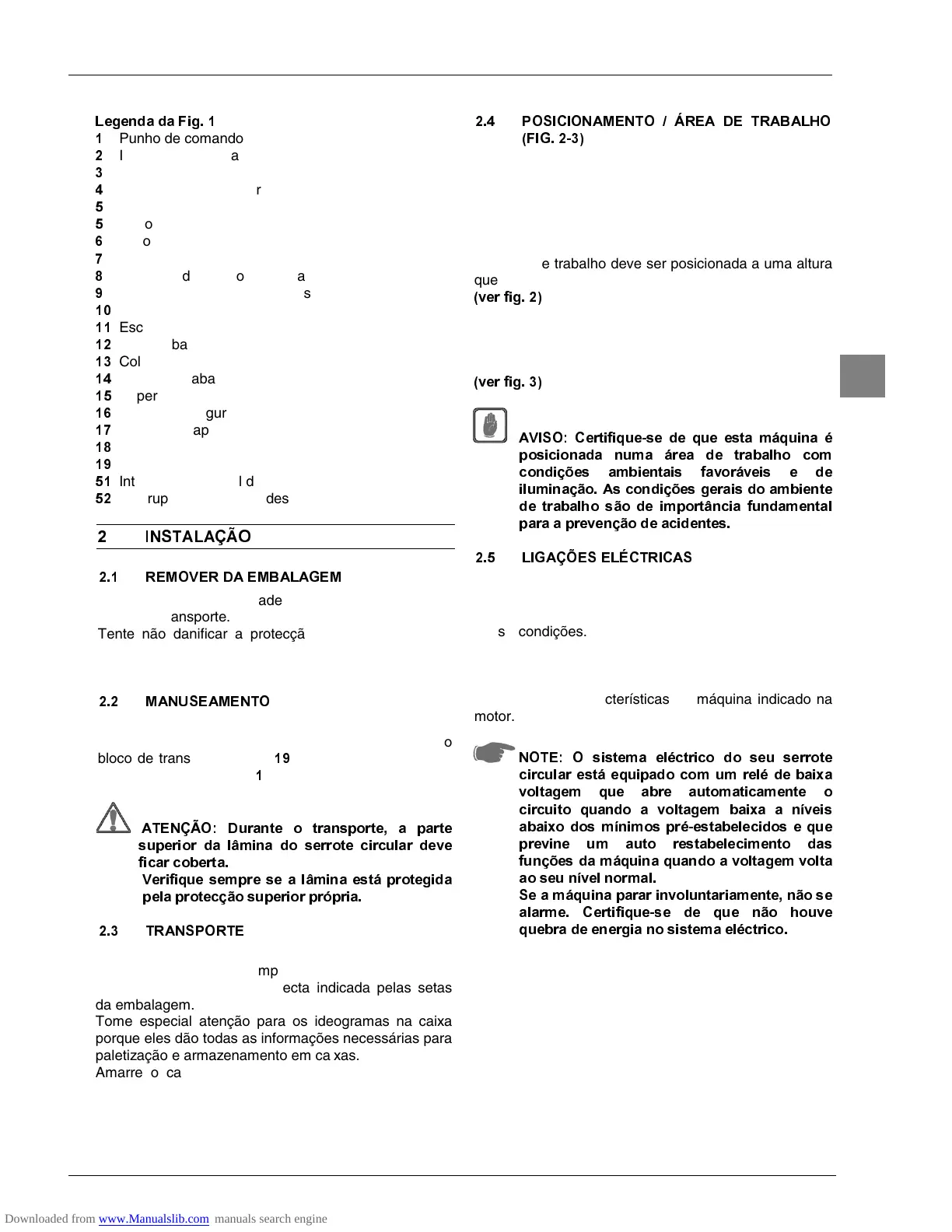 mover a máquina em longas distâncias ou armazenar