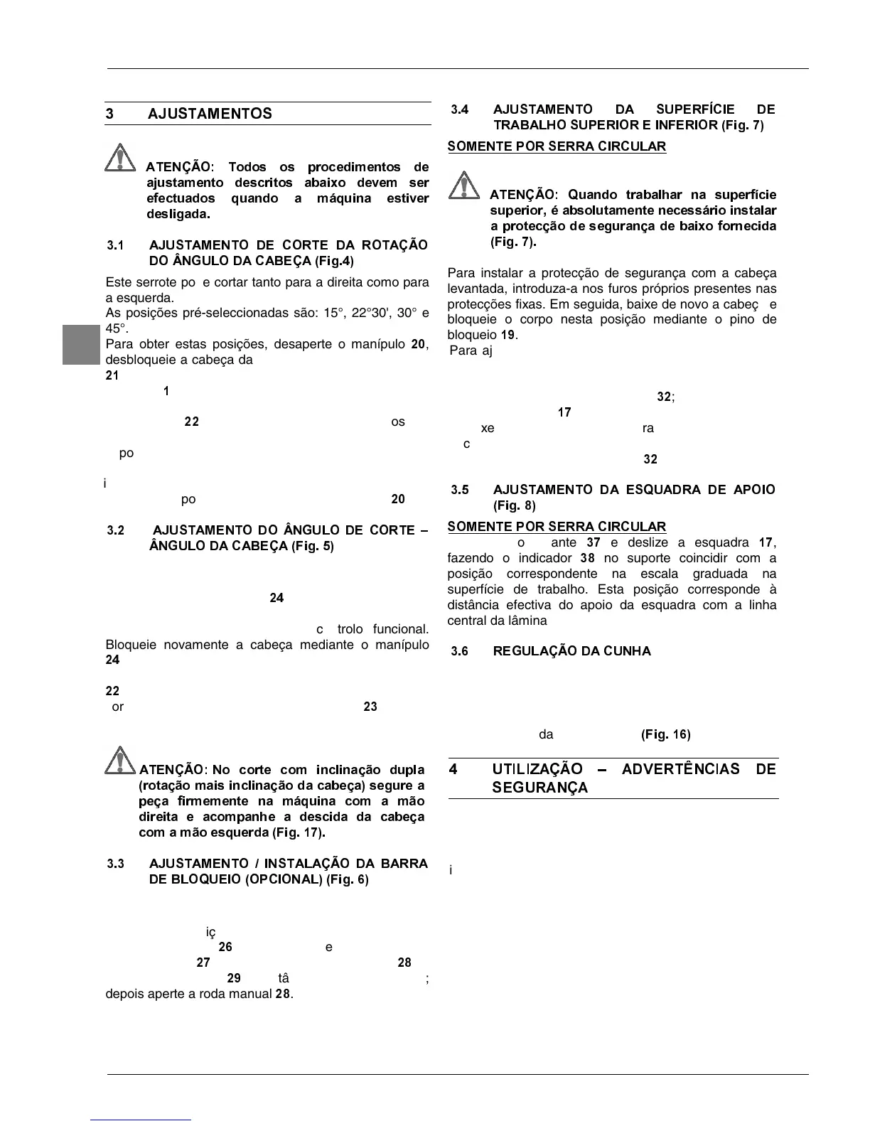 dente da lâmina. Se a distância for incorrecta,