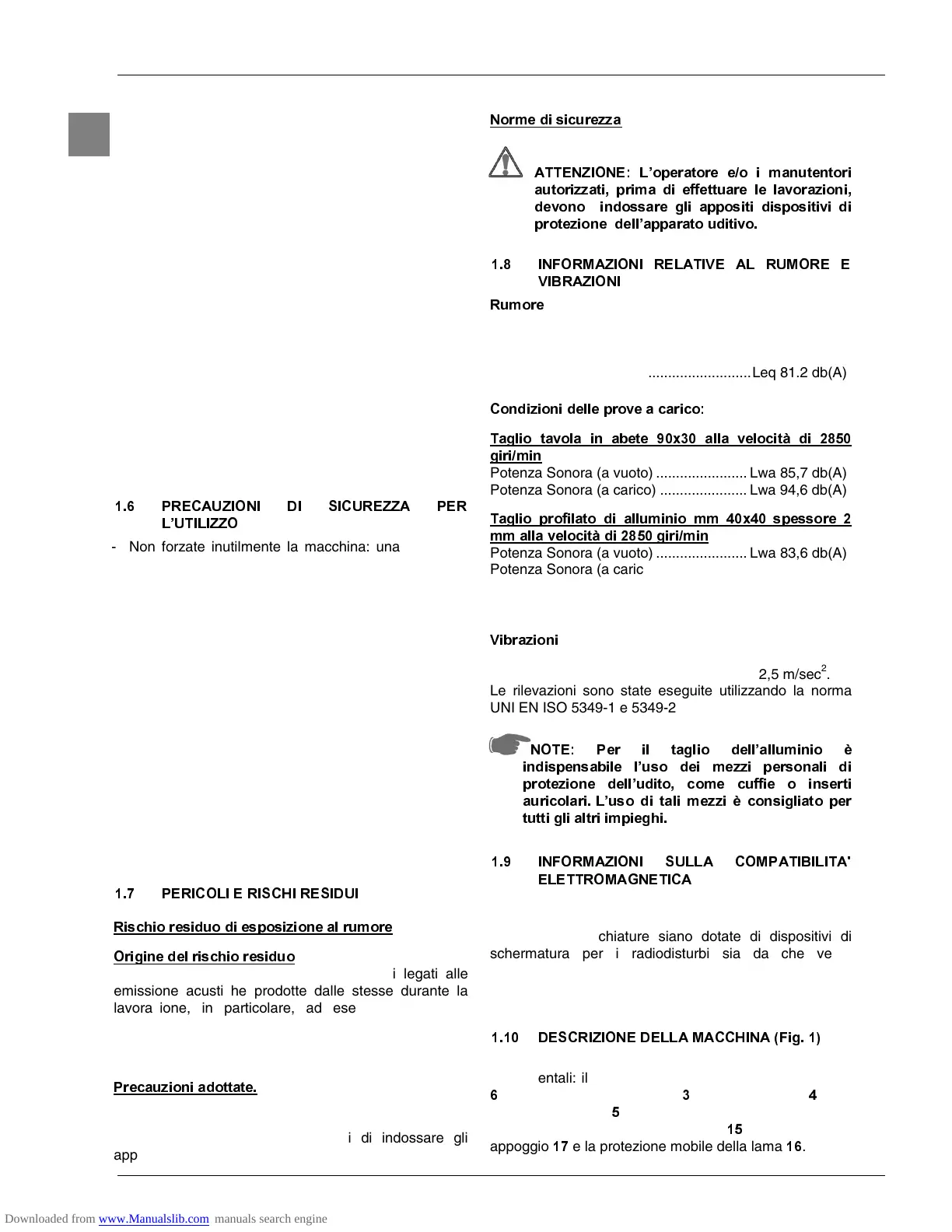operatore (a vuoto) ................................. Leq = 74 dB(A)