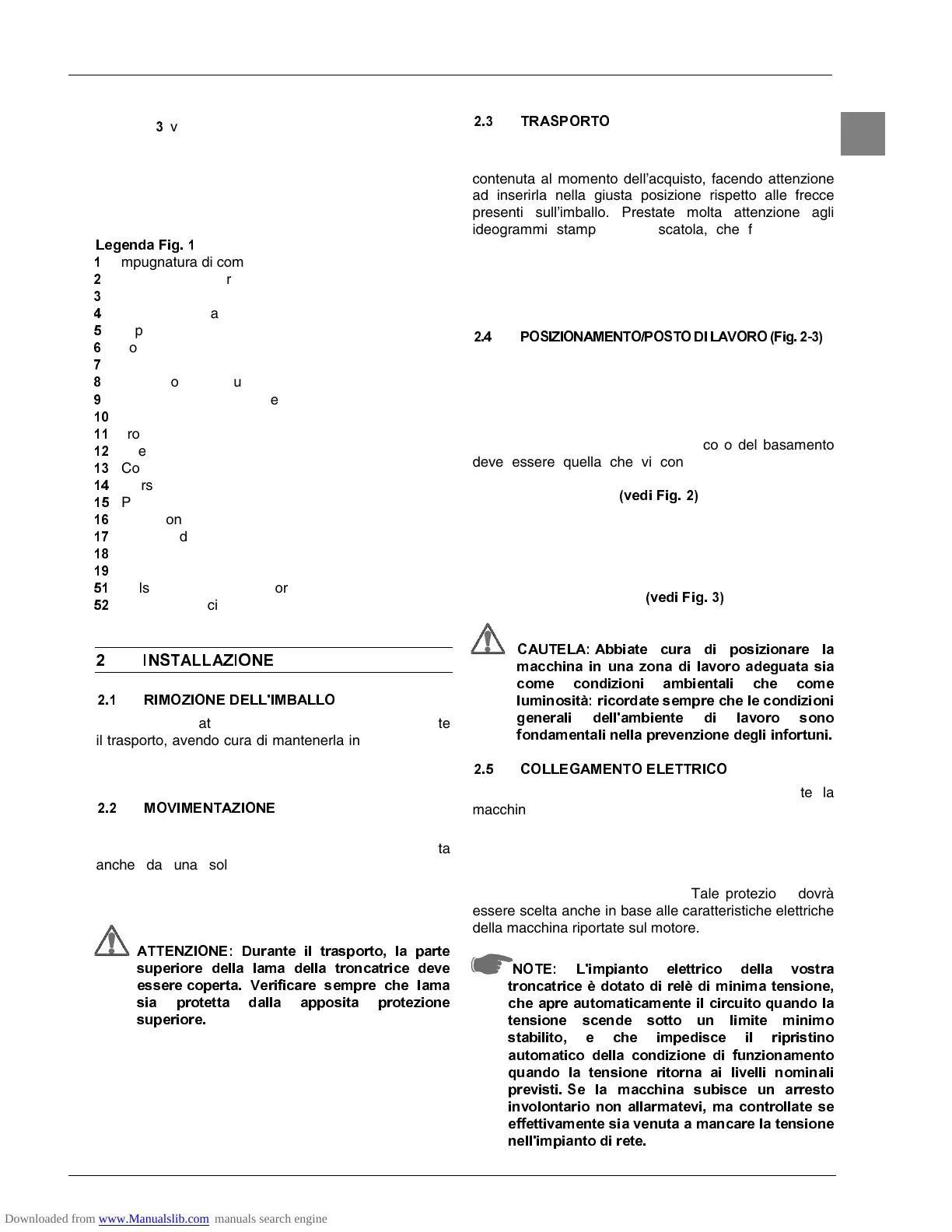 dobbiate spostare la troncatrice per lunghi tragitti o