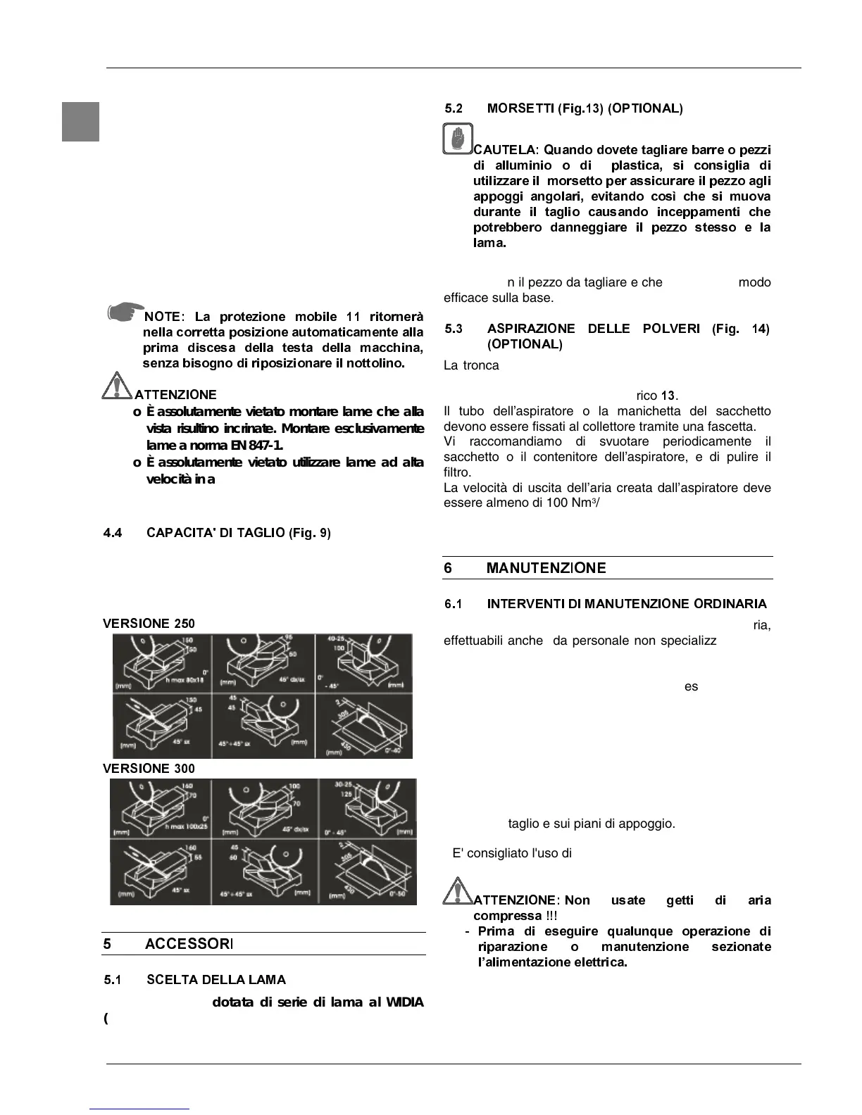 di taglio a 0° e 45° ottenibili nelle normali condizioni di