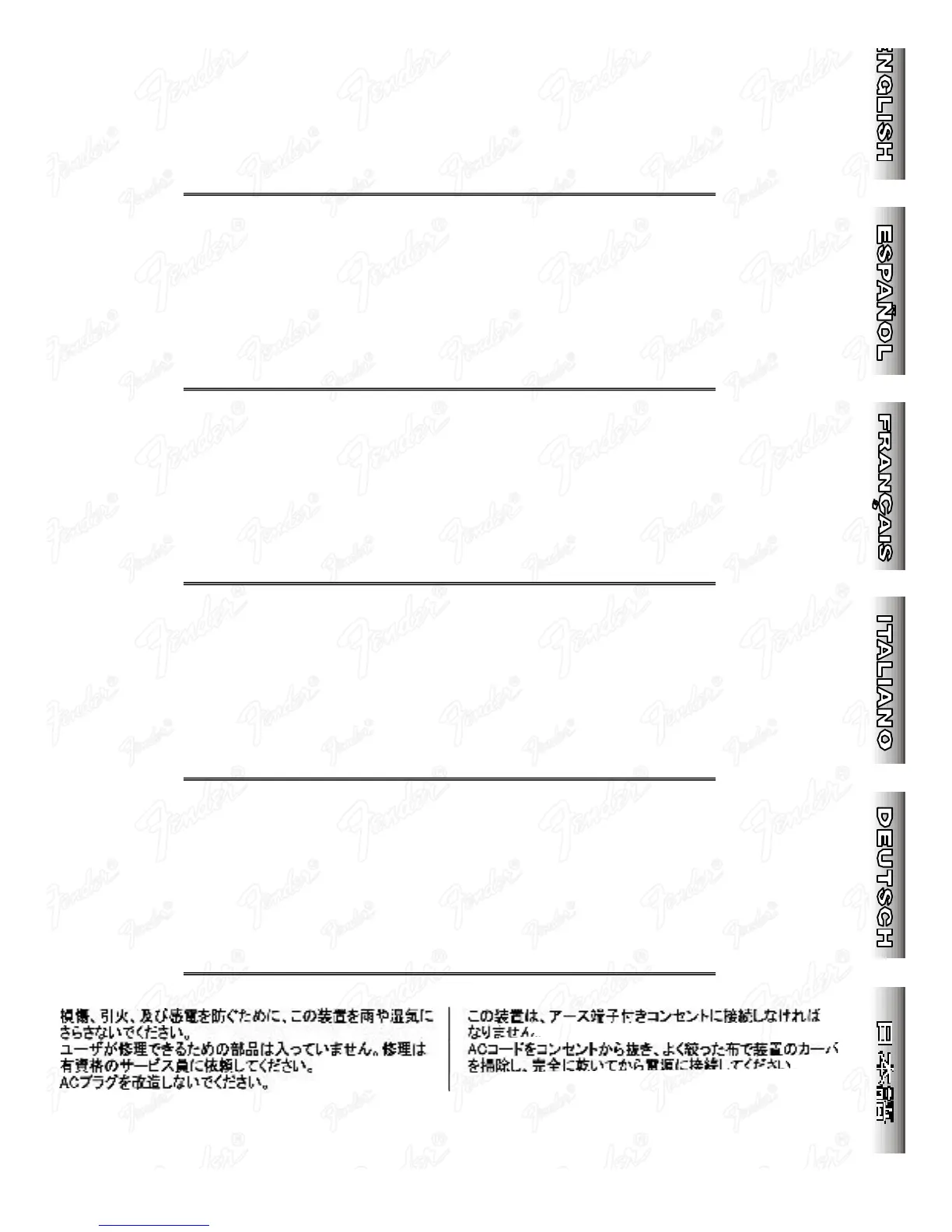 Fender 100 - Fender Stage Amplifier Safety Warnings; Electrical Safety, Grounding, and Cleaning; User Servicing and Plug Modification Restrictions