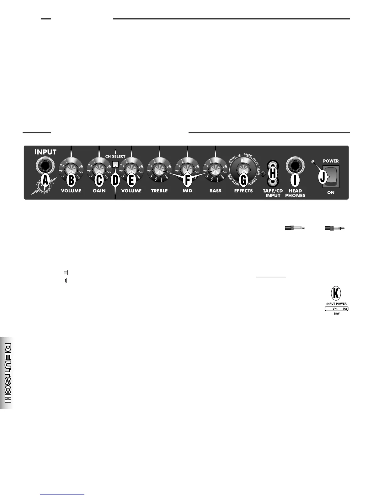 F. TREBLE / MID / BASS - Regelt die Höhen, Mitten