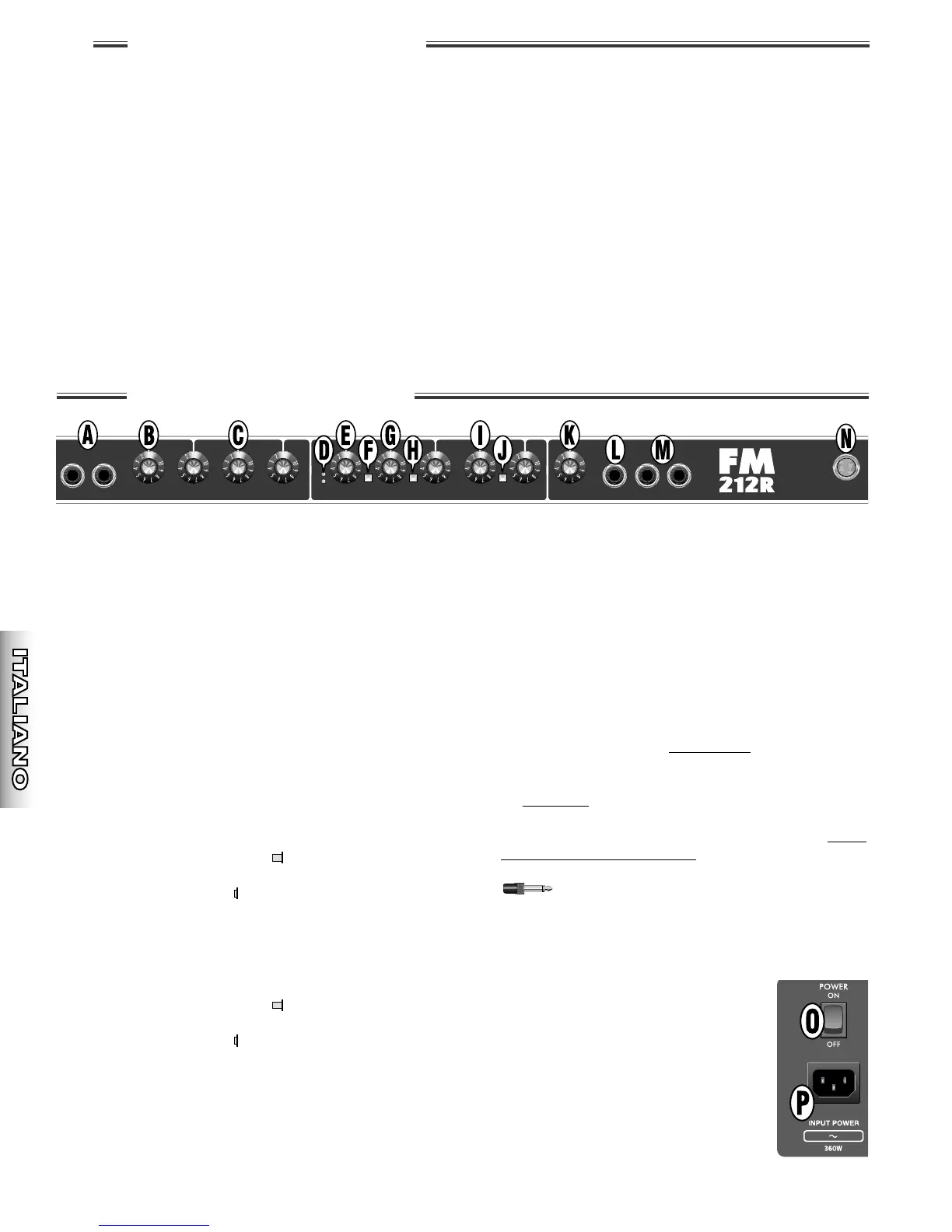 A. INPUT – Collegare qui la chitarra. L’INPUT 1 è un