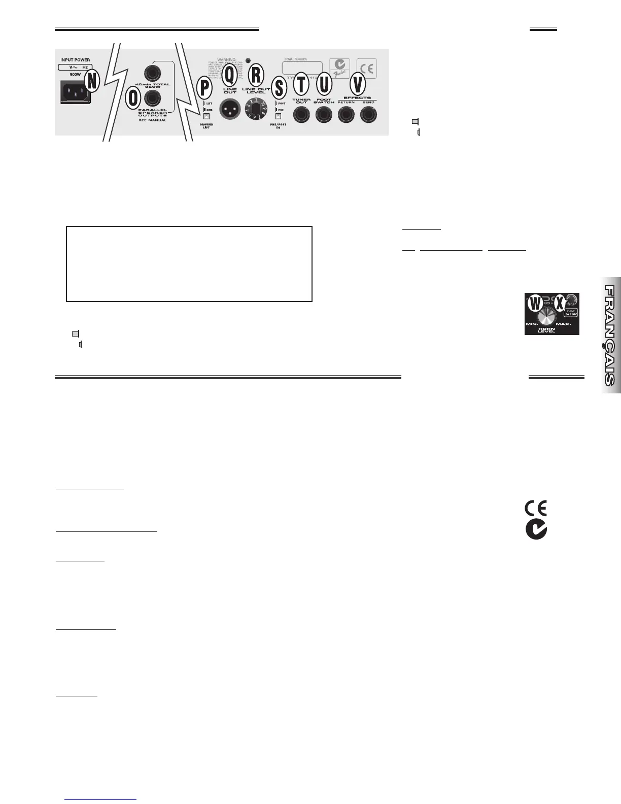 V. EFFECTS – (1) Effets Loop - Permet de raccorder la prise SEND