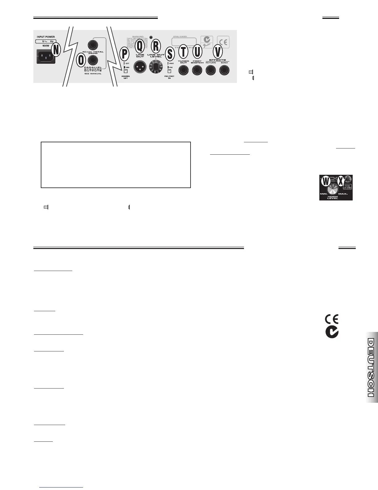 EFFECTS LOOP IMPEDANZ: SEND: 1 kΩ RETURN: 22 kΩ
