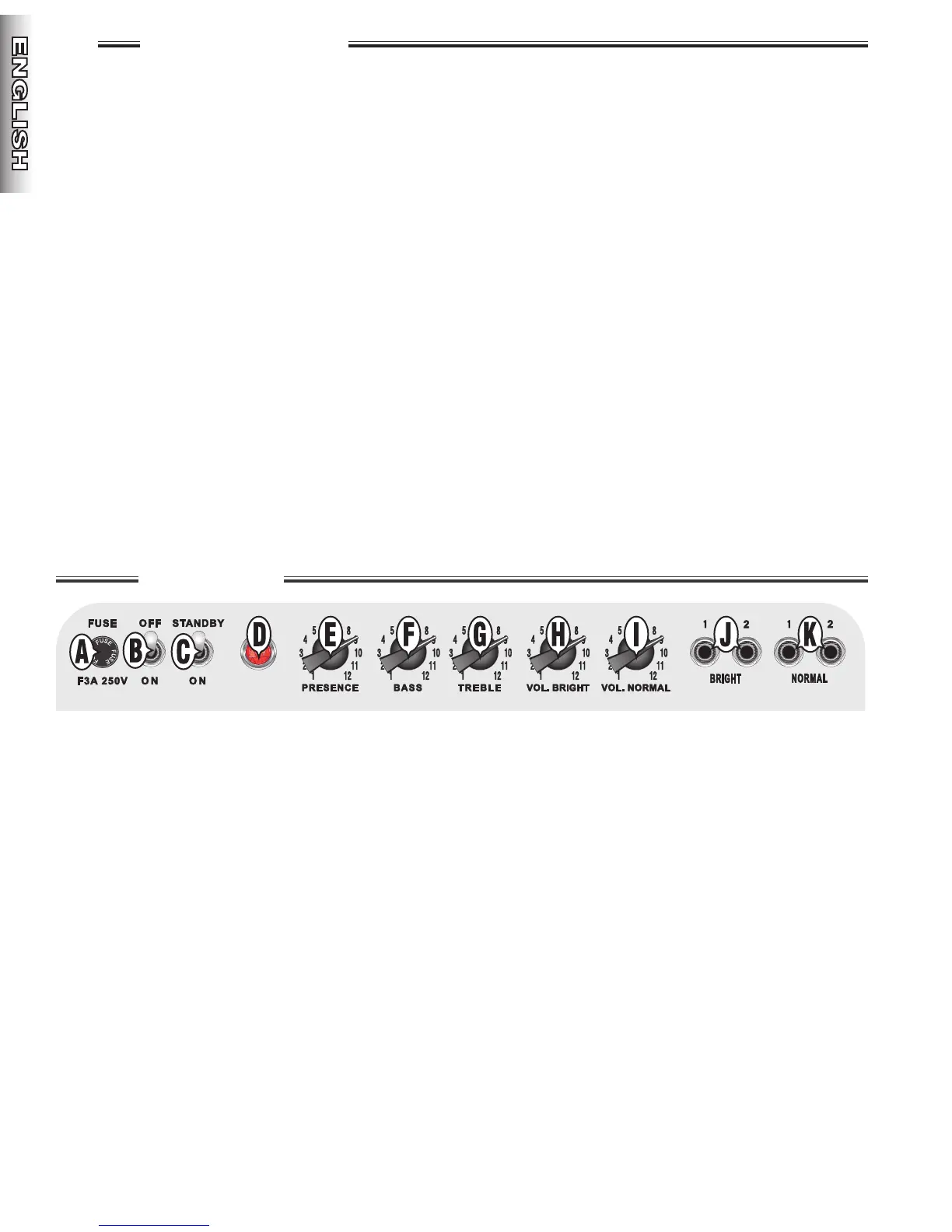 G. TREBLE - Adjusts the high-frequency tone.