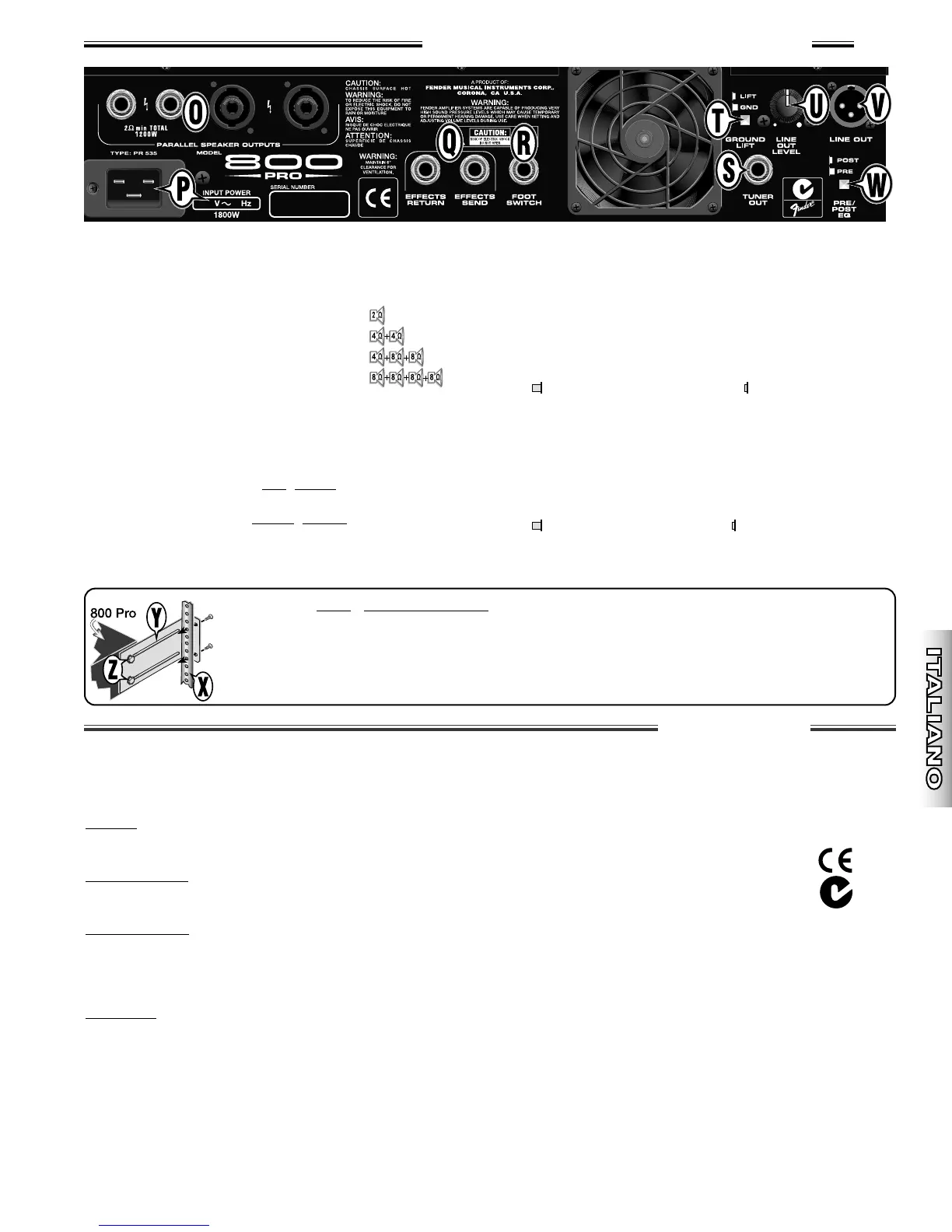 1) Rimuovere i due bulloni {Z} sui due lati dell’amplificatore 800 Pro e