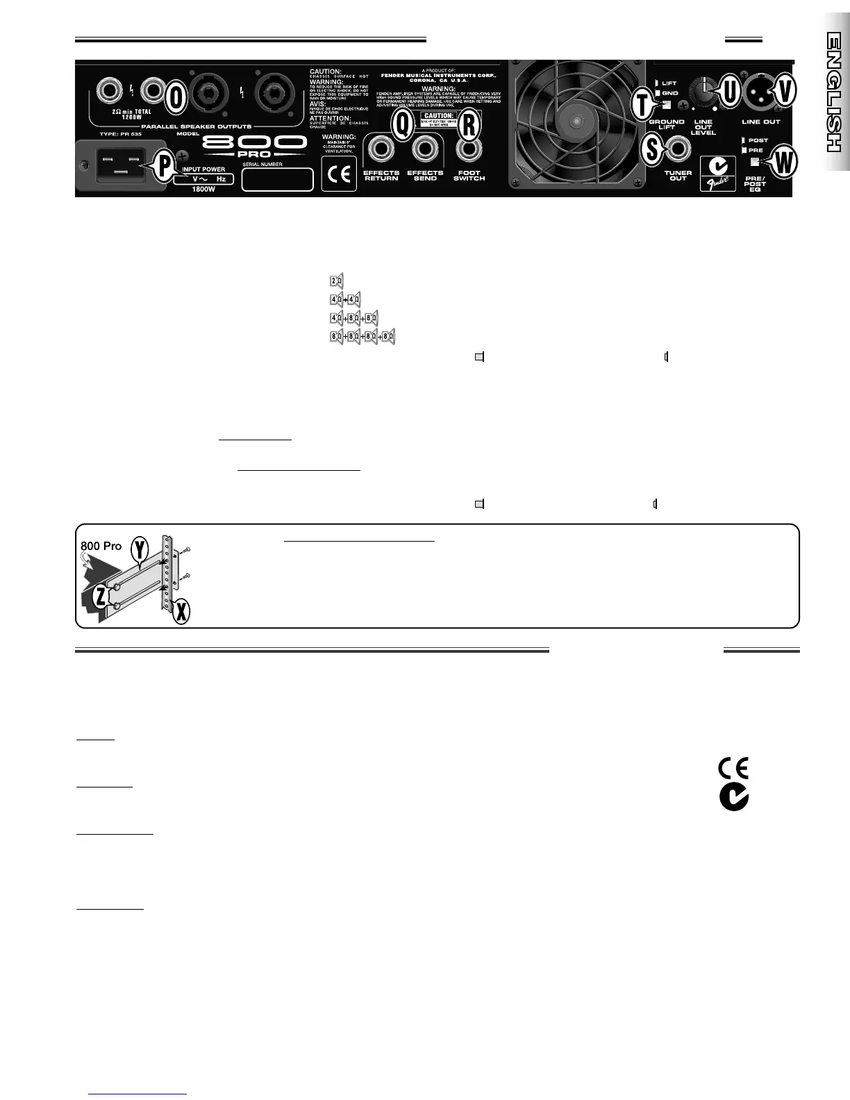 EFFECTS LOOP IMPEDANCES: SEND: 1kΩ RETURN: 22kΩ