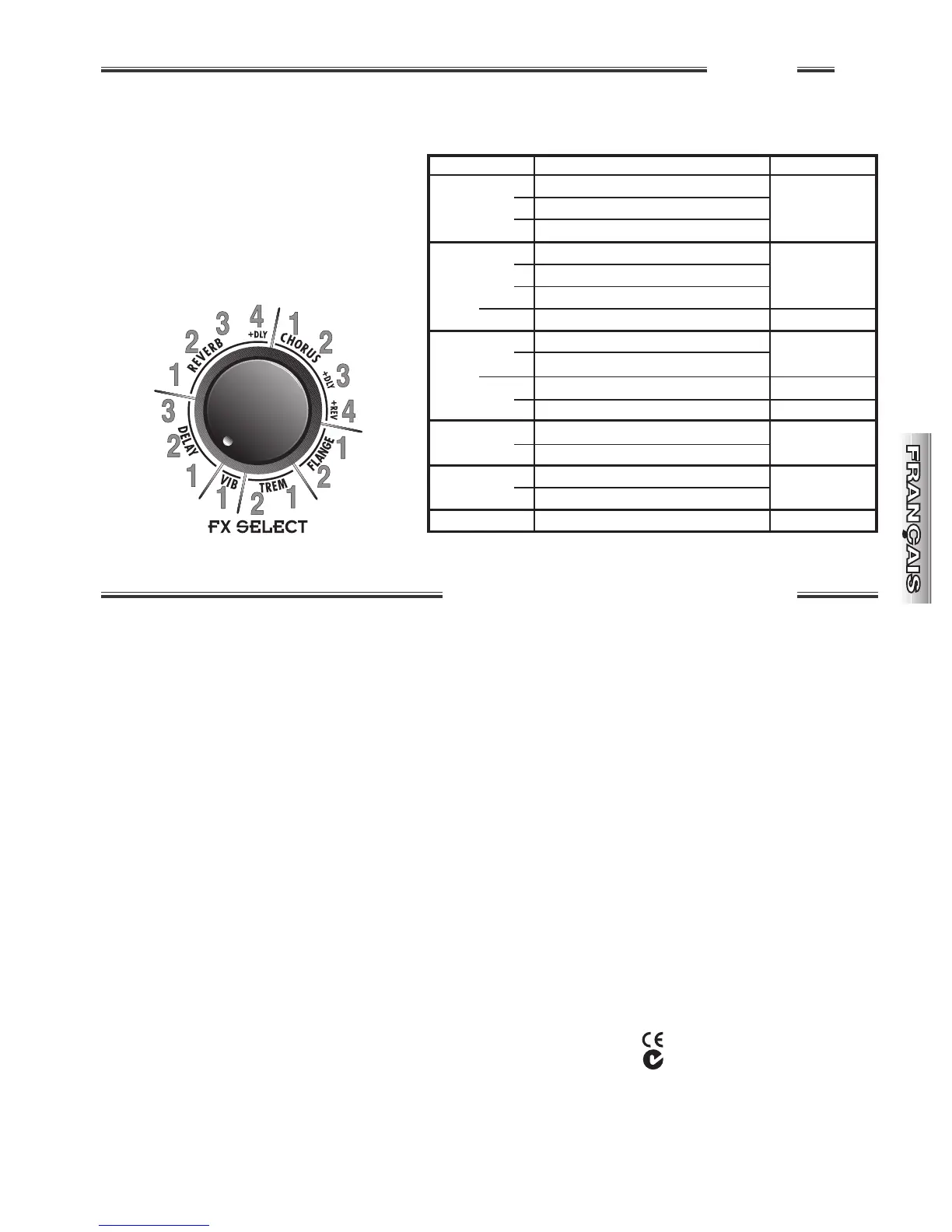 Sélection du canal / Sélection du Drive / Bypass des effets