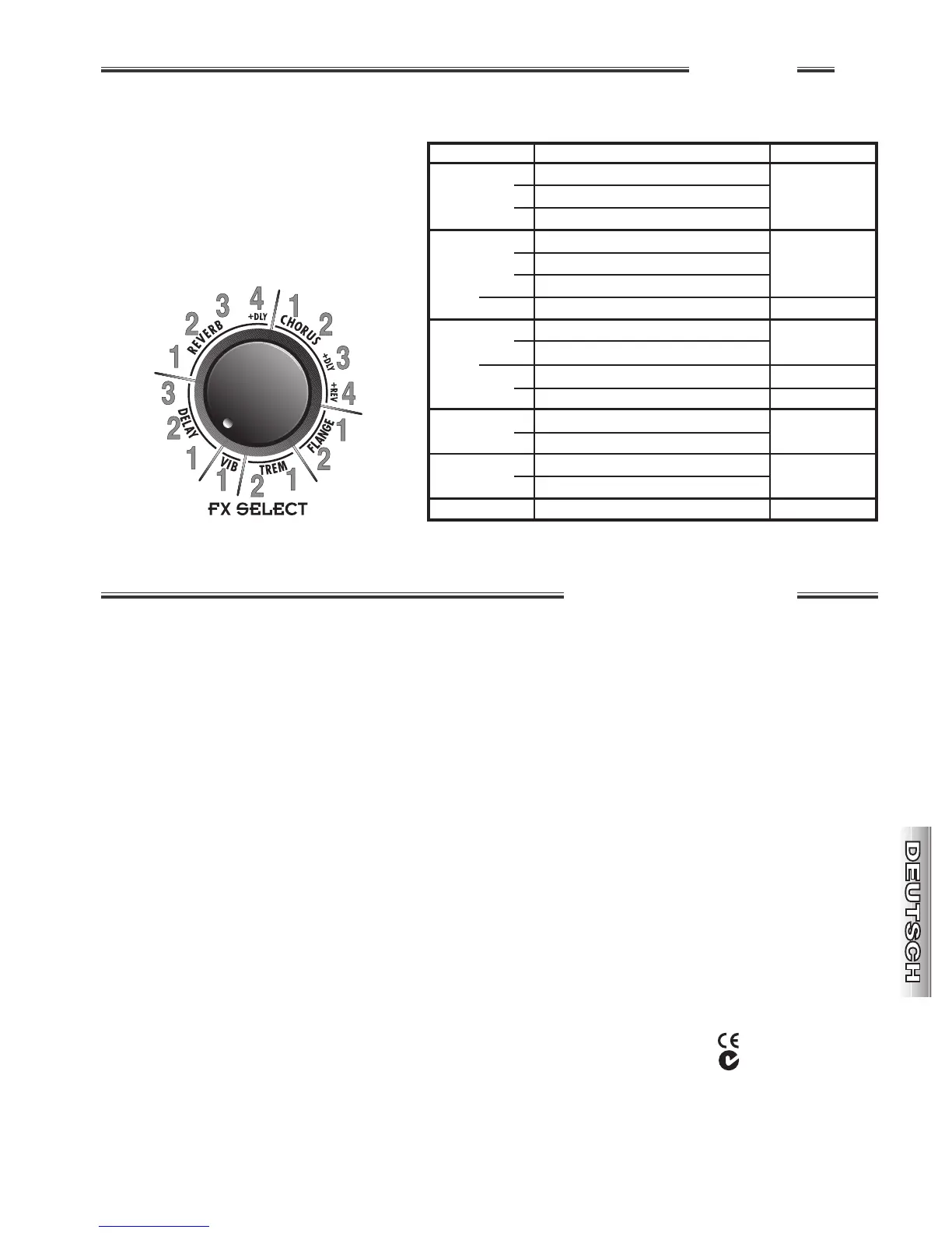 Wählt 16 Variationen von 6 Effekttypen. Delay erzeugt