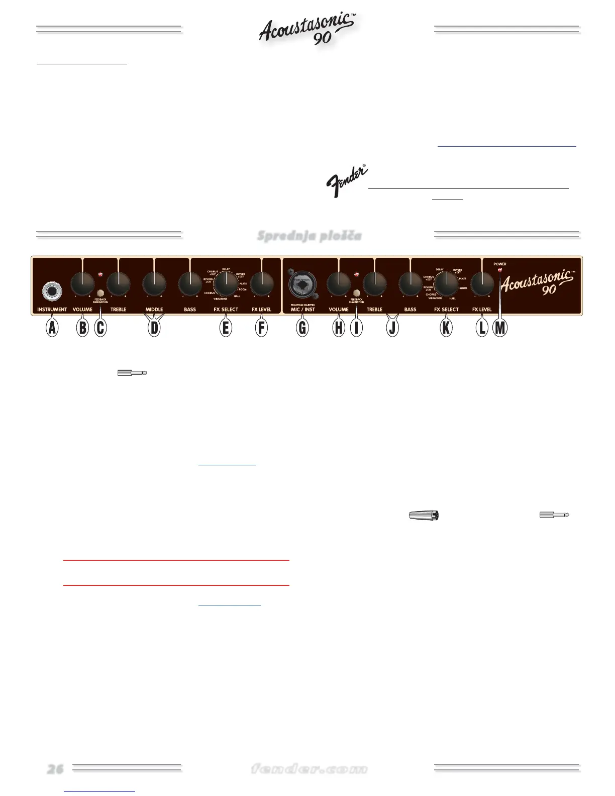 • REGISTRACIJA IZDELKA - Pojdite na: www.fender.com/product-registration