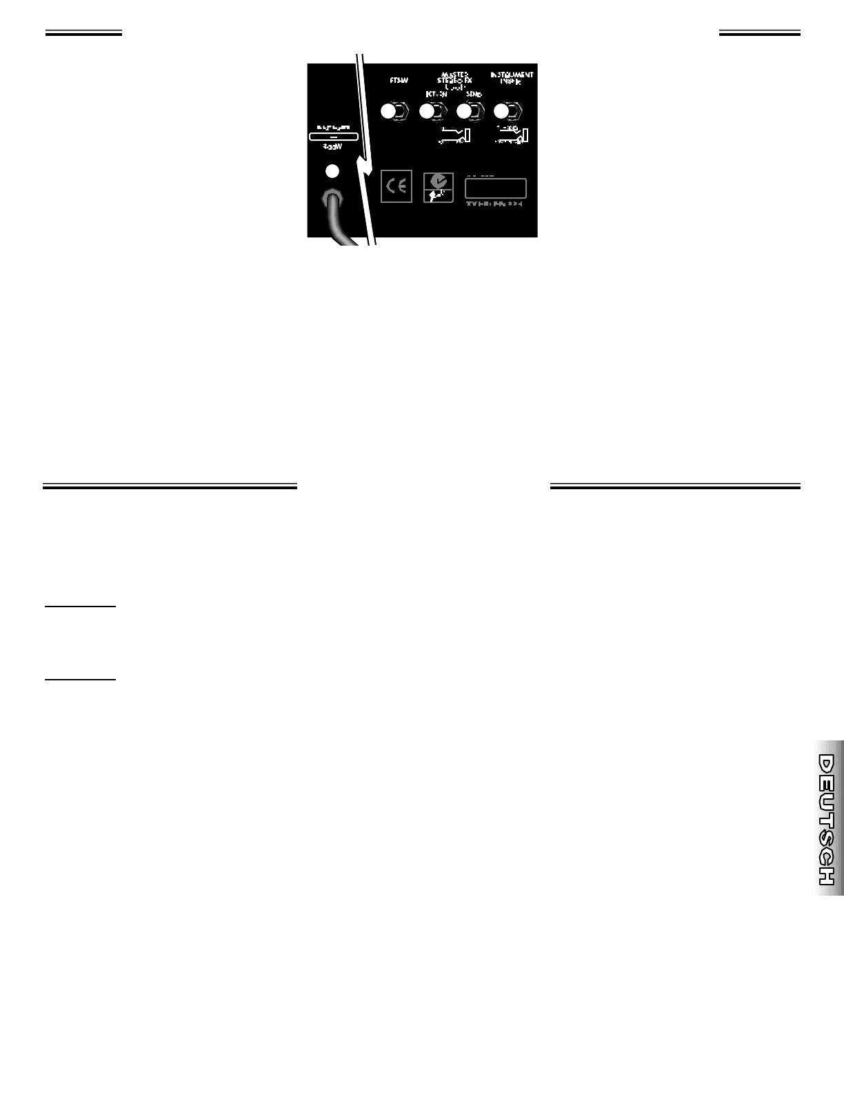 EMPFINDLICHKEIT BEI VOLLER LEISTUNG: 12,75mV (Instr), 5 mV (Mic), 50 mV (Line/Instr)