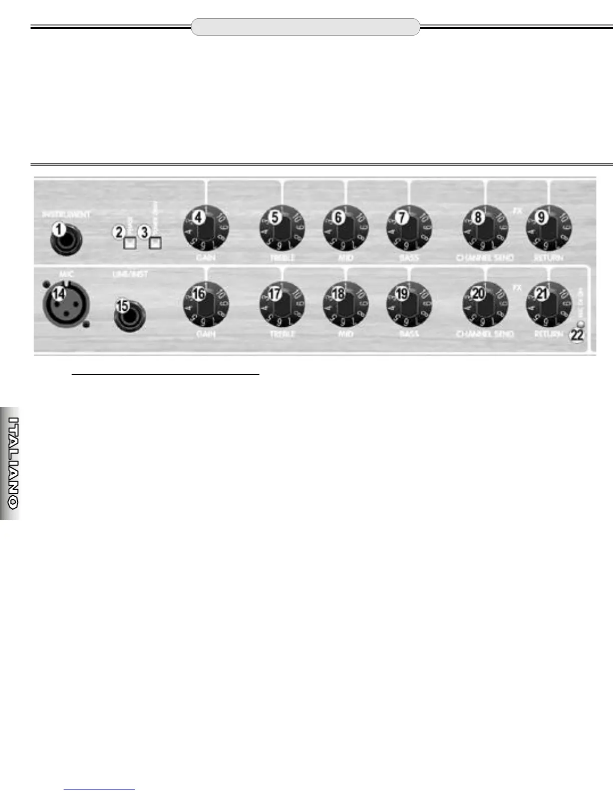 1. INSTRUMENT - Collegare a questo jack la chitarra o lo