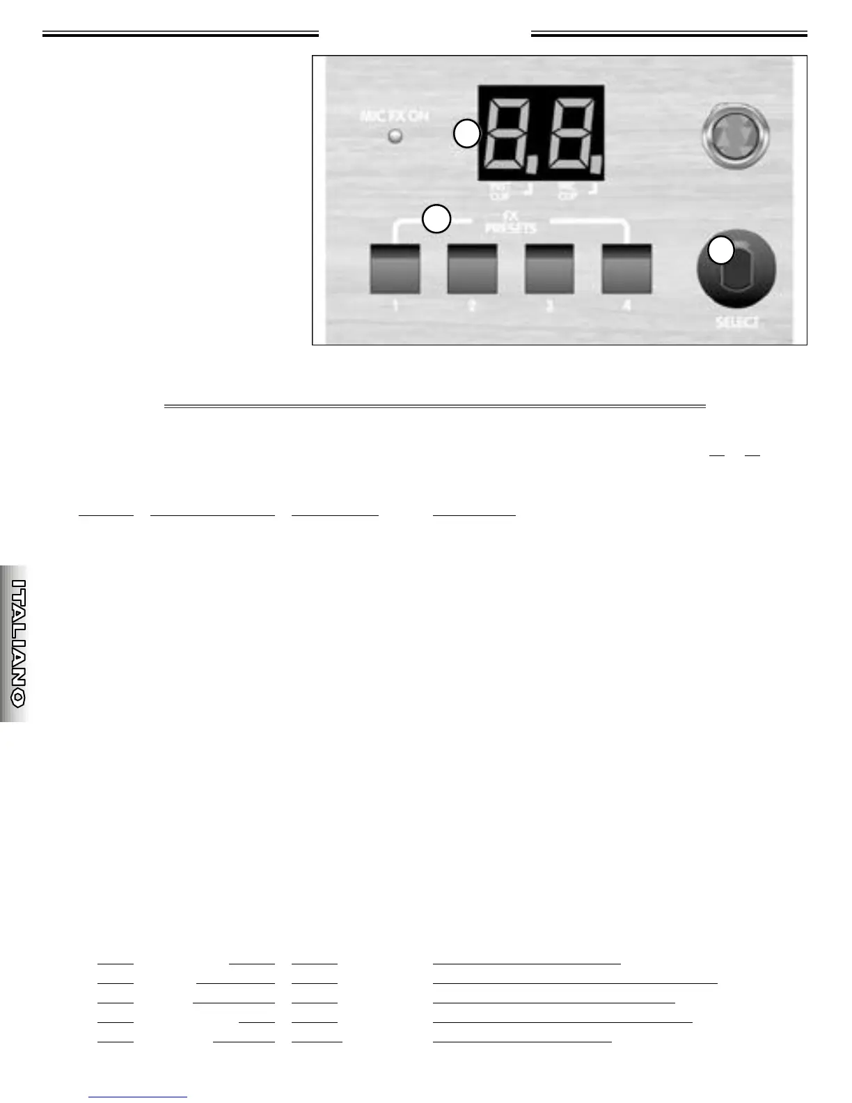 t e n e re premuto il pulsante FX pre s e t