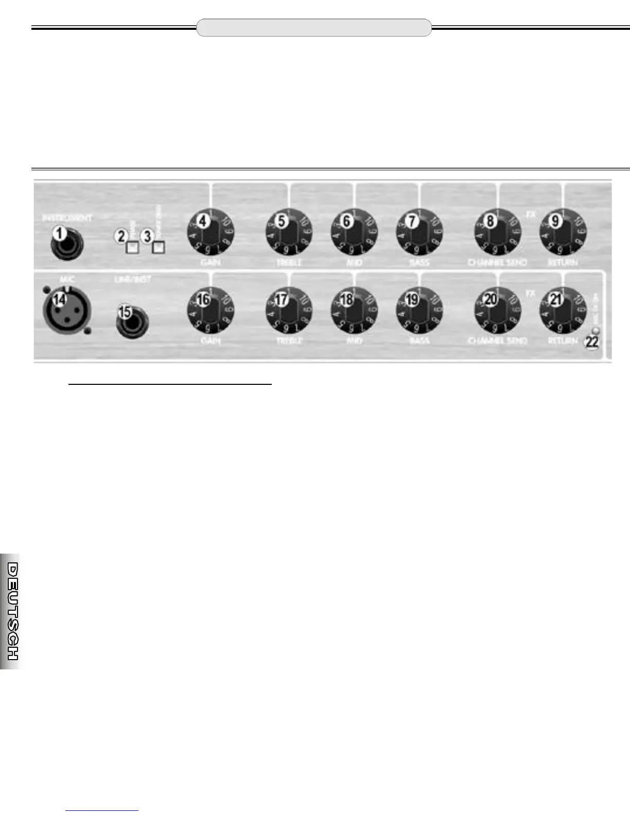 5. TREBLE — Regelt die Höhen des Instrumentenkanals.