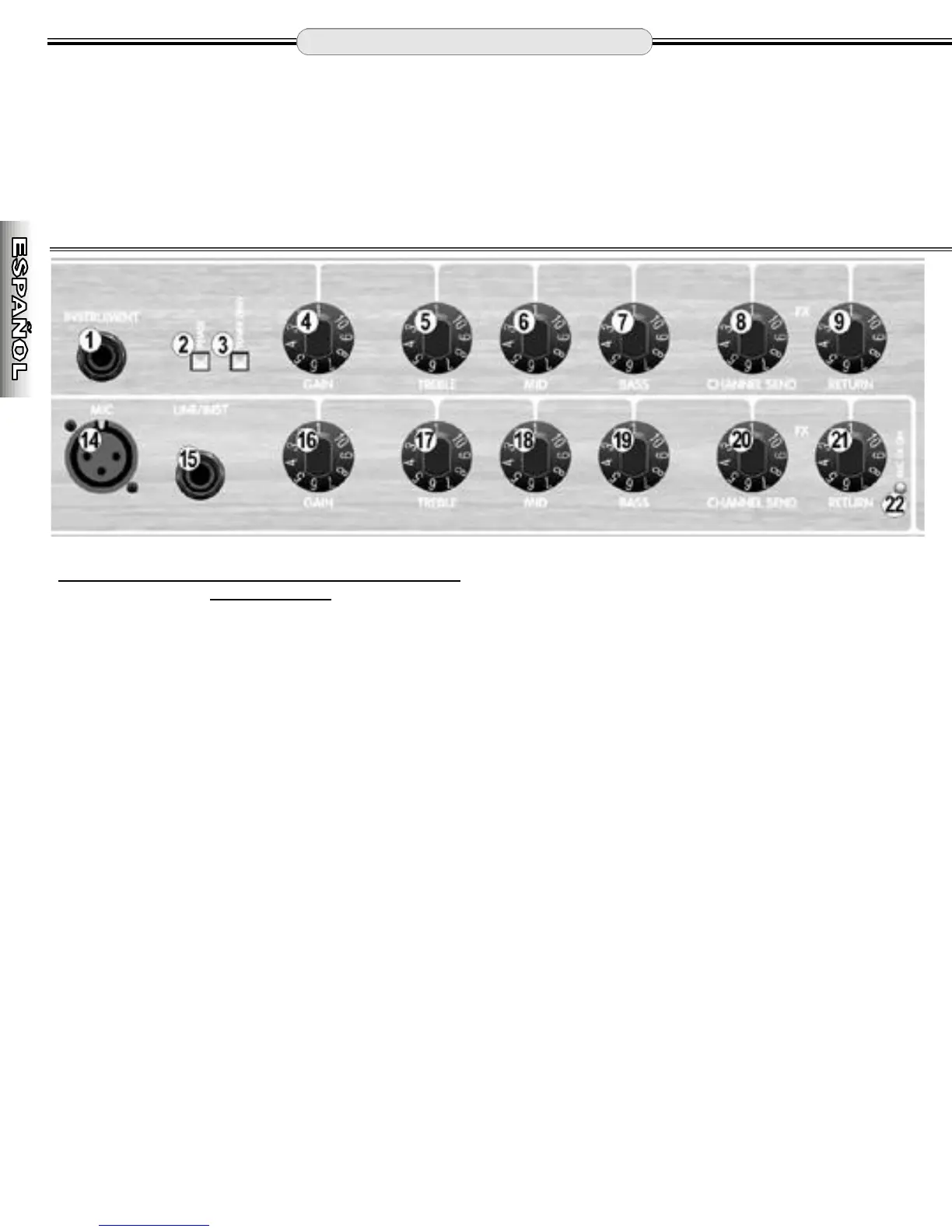4. GAIN : Ajusta el nivel de volumen del canal del instru m e n t o .