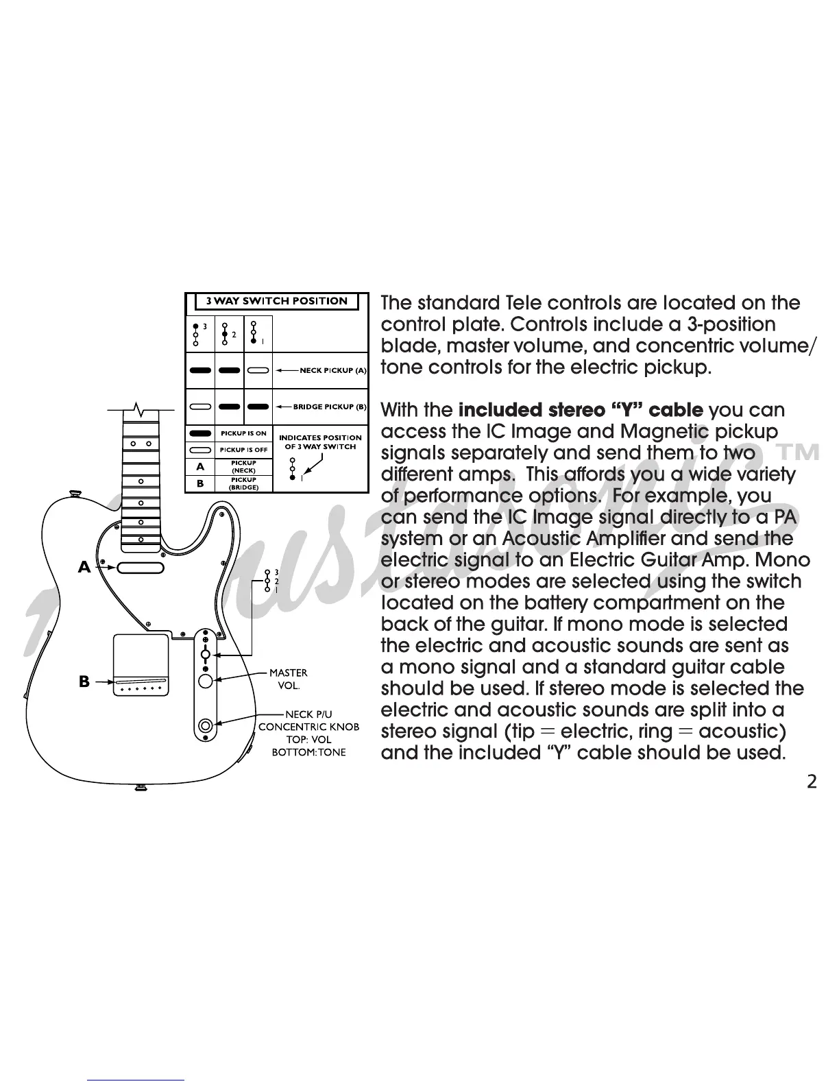 Fender ACOUSTASONIC - Guitar Controls and Connectivity; Electric Pickup and Output Controls; Stereo Output and Y-Cable Usage