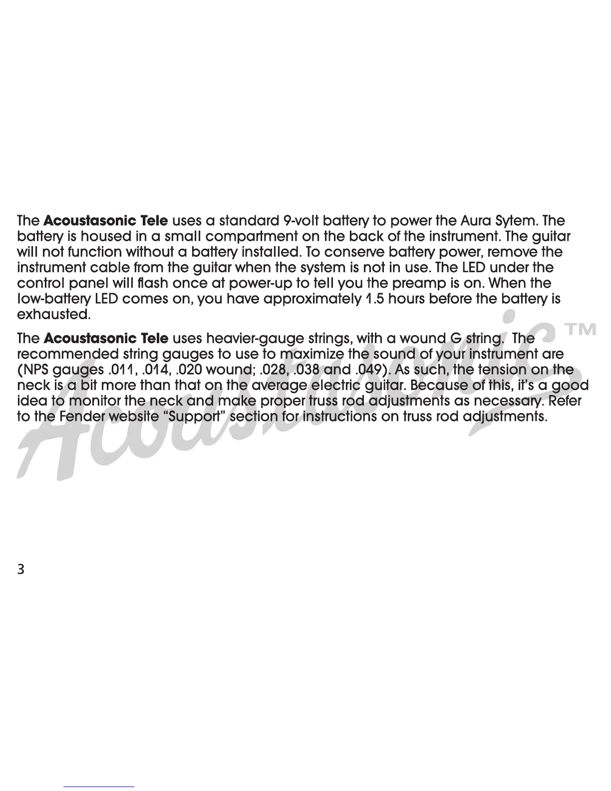 Fender ACOUSTASONIC - Setup and Maintenance; Battery Requirements and Management; String Gauge and Neck Tension