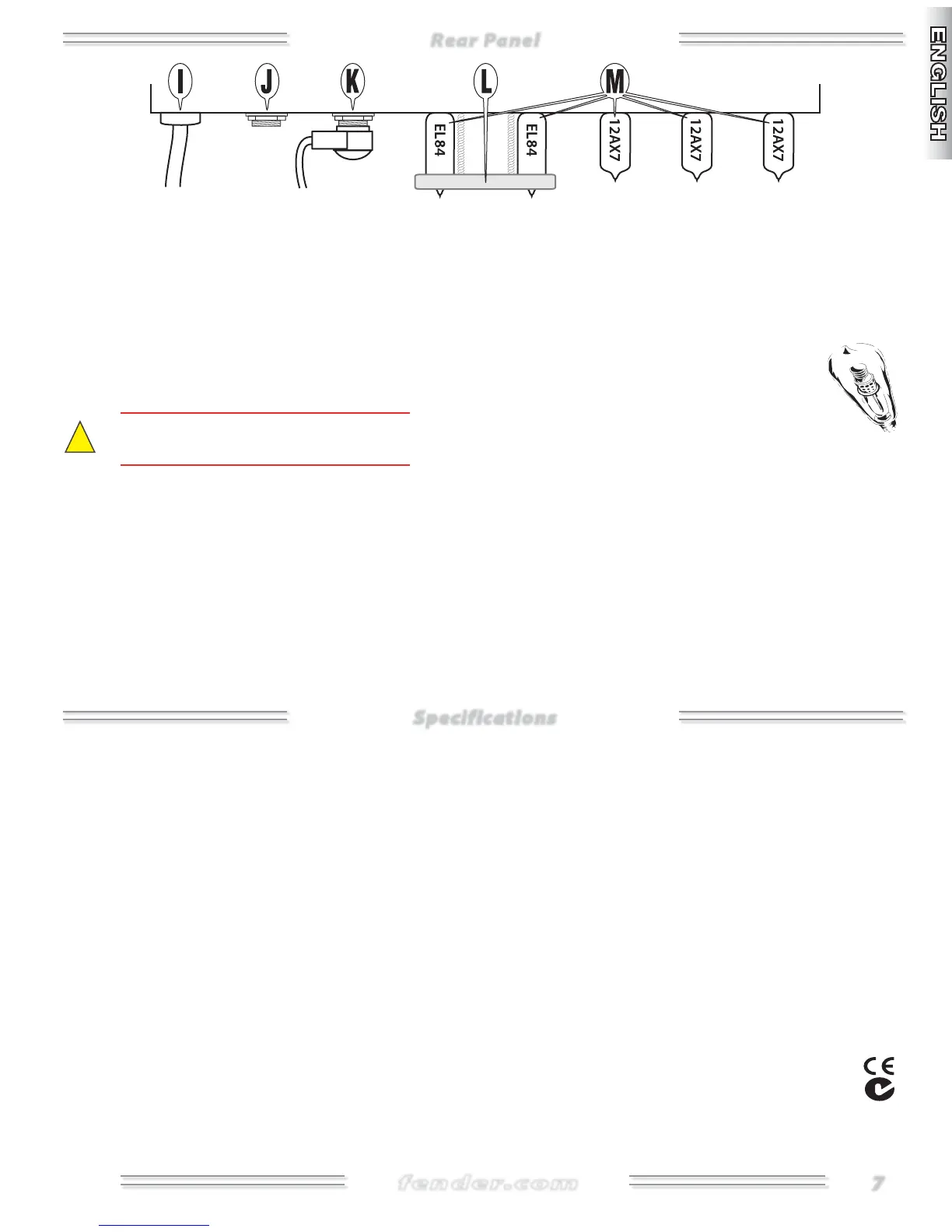 TUBES PRE-AMPLIFIER: 1–Fender Groove Tube 12AX7 (P/N 001-3341-000) 2–Fender Groove Tubes 12AX7 (P/N 007-0228-000)