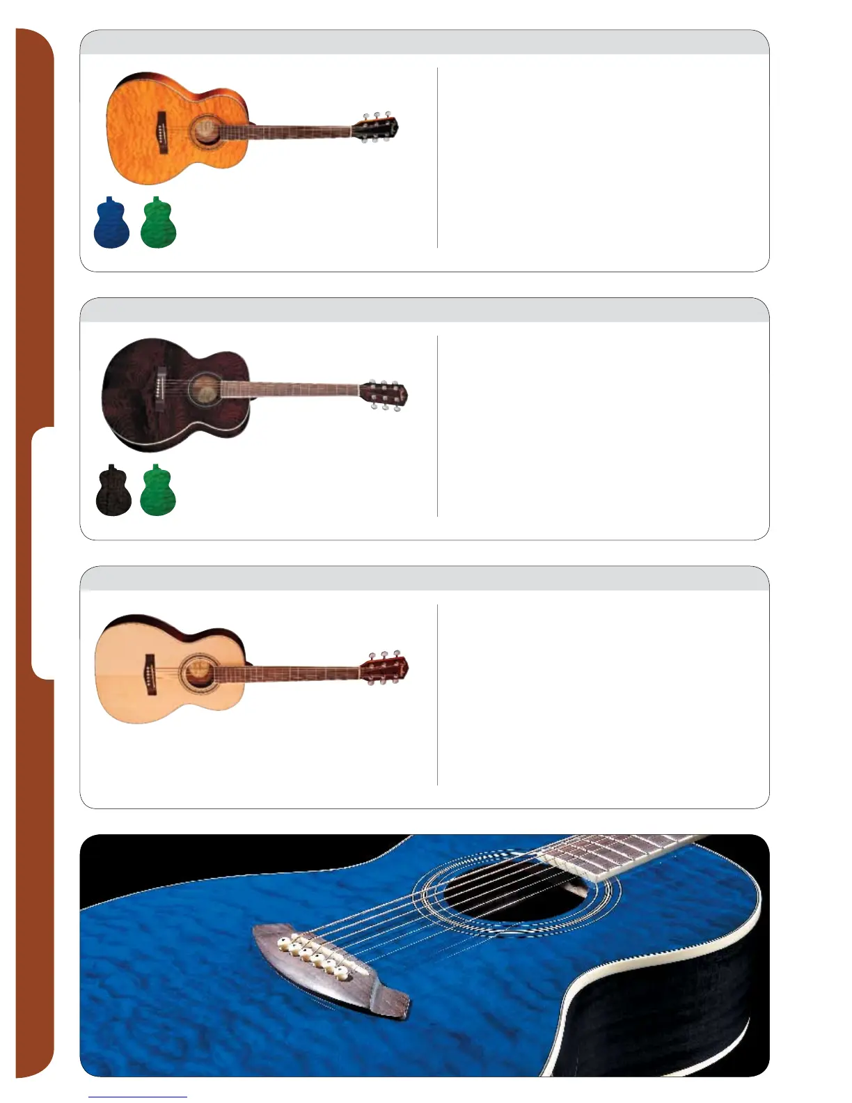 “F” inlay. Also features die-cast tuners, and is available in three