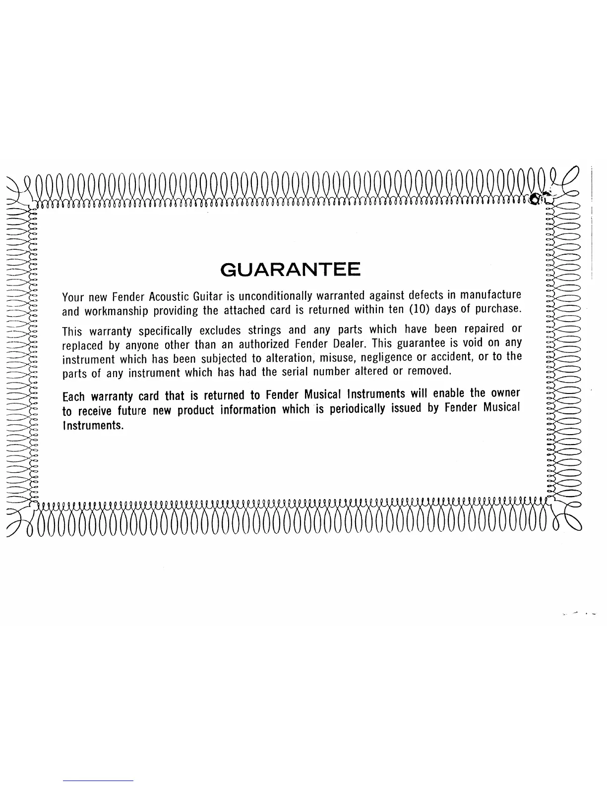 Fender CONCERT - Warranty and Care Information; Product Guarantee