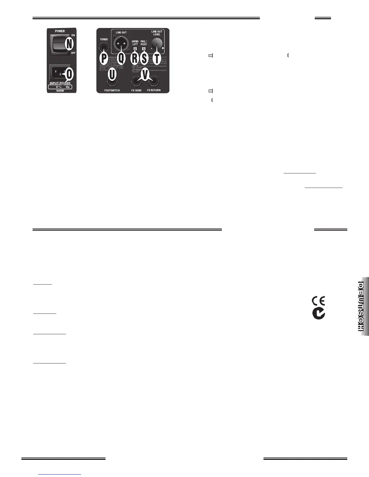 N. POWER-SCHALTER - Schaltet den Amp ein/aus.