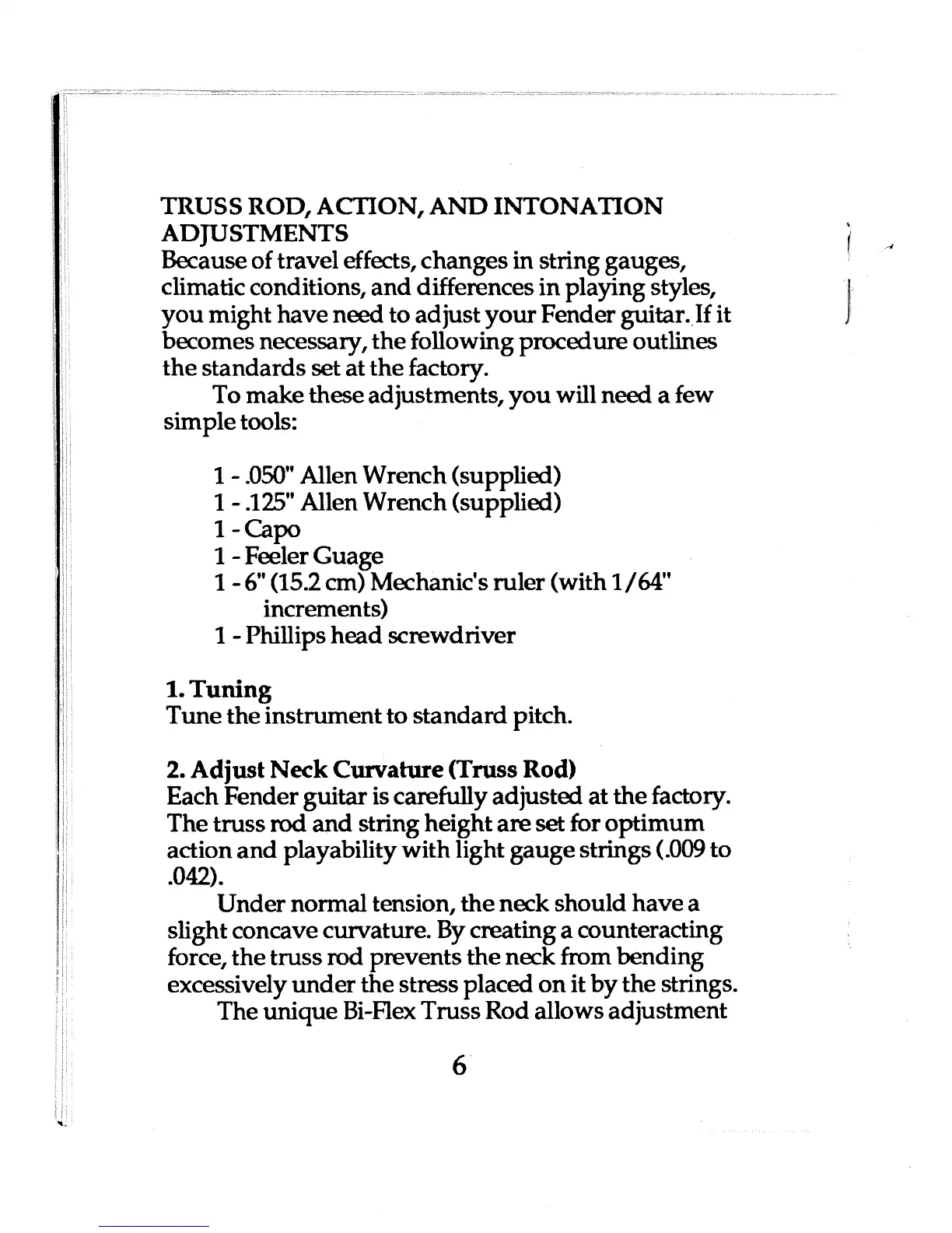Fender Eric Clapton Stratocaster - Guitar Adjustments and Setup; Truss Rod Adjustment