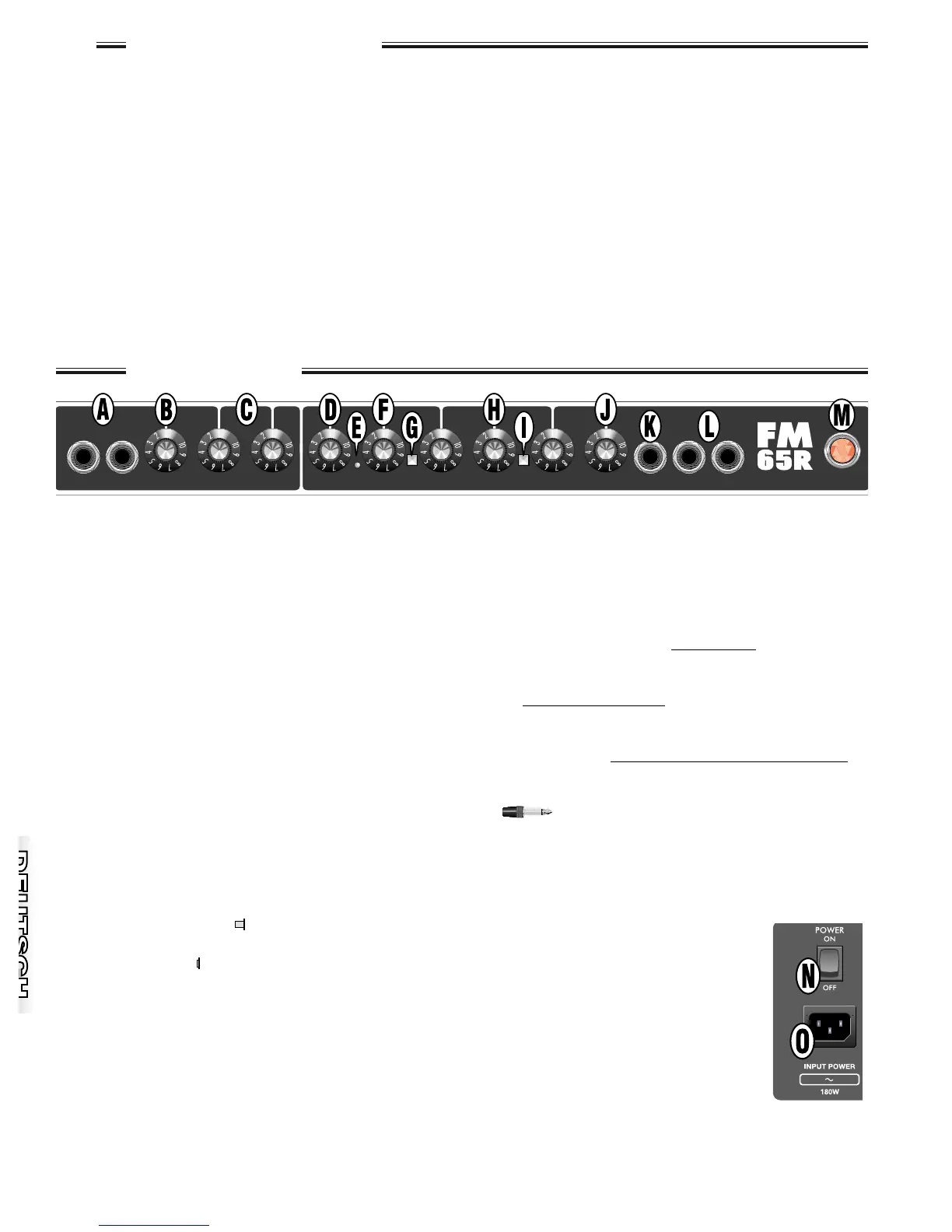 A. INPUT (Eingang) – Anschlussbuchse für die Gitarre.