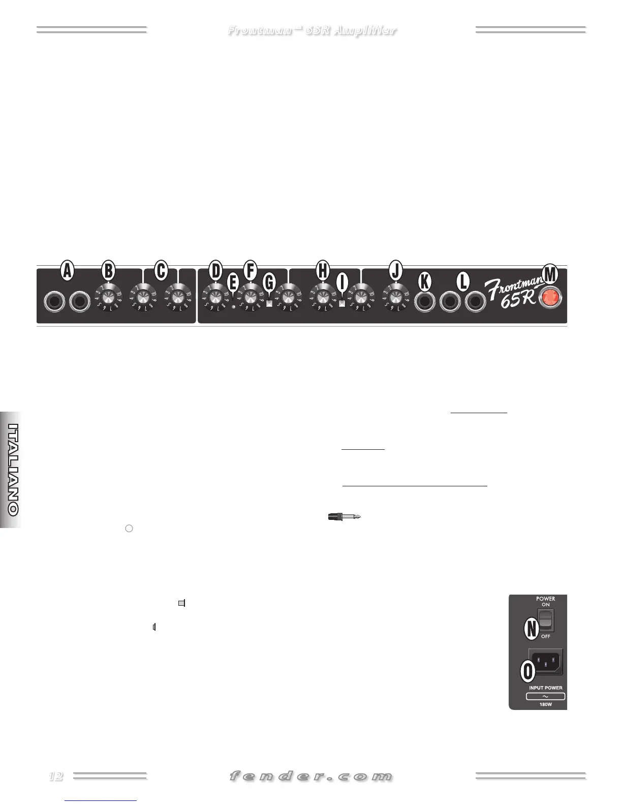 A. INPUT – Collegare qui la chitarra. L’INPUT 1 è un