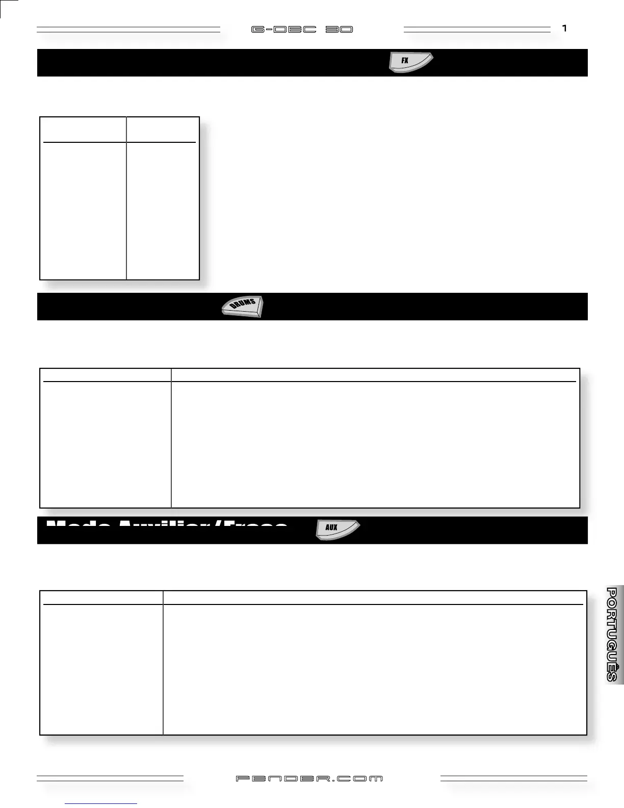 2 AUX MIX (Mixer Aux) Estéreo, Cancela Centro, Esquerda, Direita— (Útil para enfatizar ou desenfatizar partes de guitarra em algum material gravado)