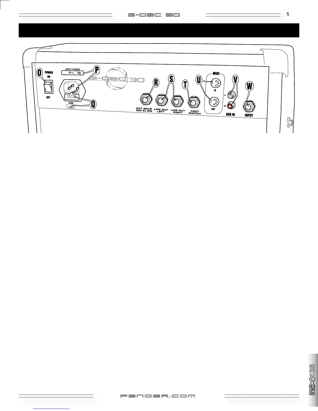 P. 電源ケーブル用ソケット- 付属の電源ケーブルでG-DEC 30をアース