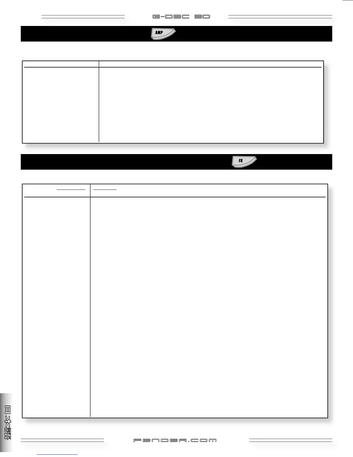 Ampモードでは、アンプのタイプ(最初のメニュー)と、選択したアンプのタイプに応じた設定(メニュー2〜9)を変更できます。