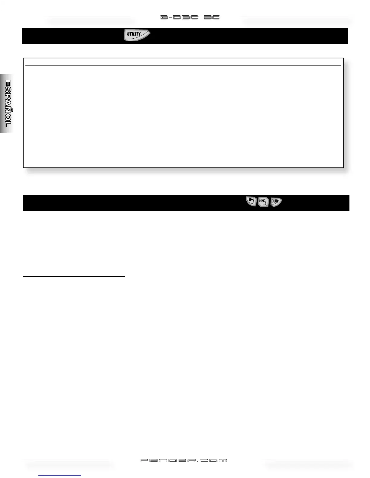 13 FACTORY RESTORE Pulse SAVE dos veces — (Restaura los ajustes del G–DEC 30 a sus valores originales. NO TIENE EN CUENTA EL BLOQUEO DE MEMORIA.)