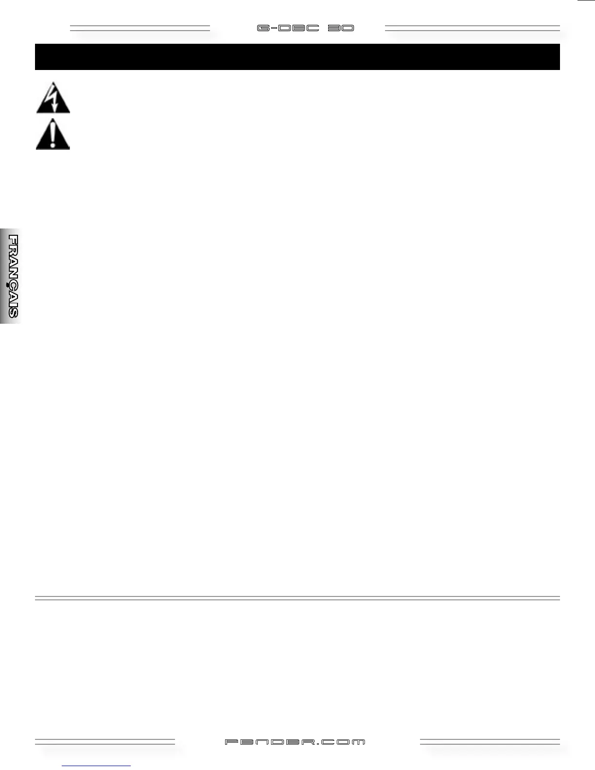 Fender®, G–DEC®, Blackface™ et Dyna–Touch™ sont des marques déposées de FMIC.