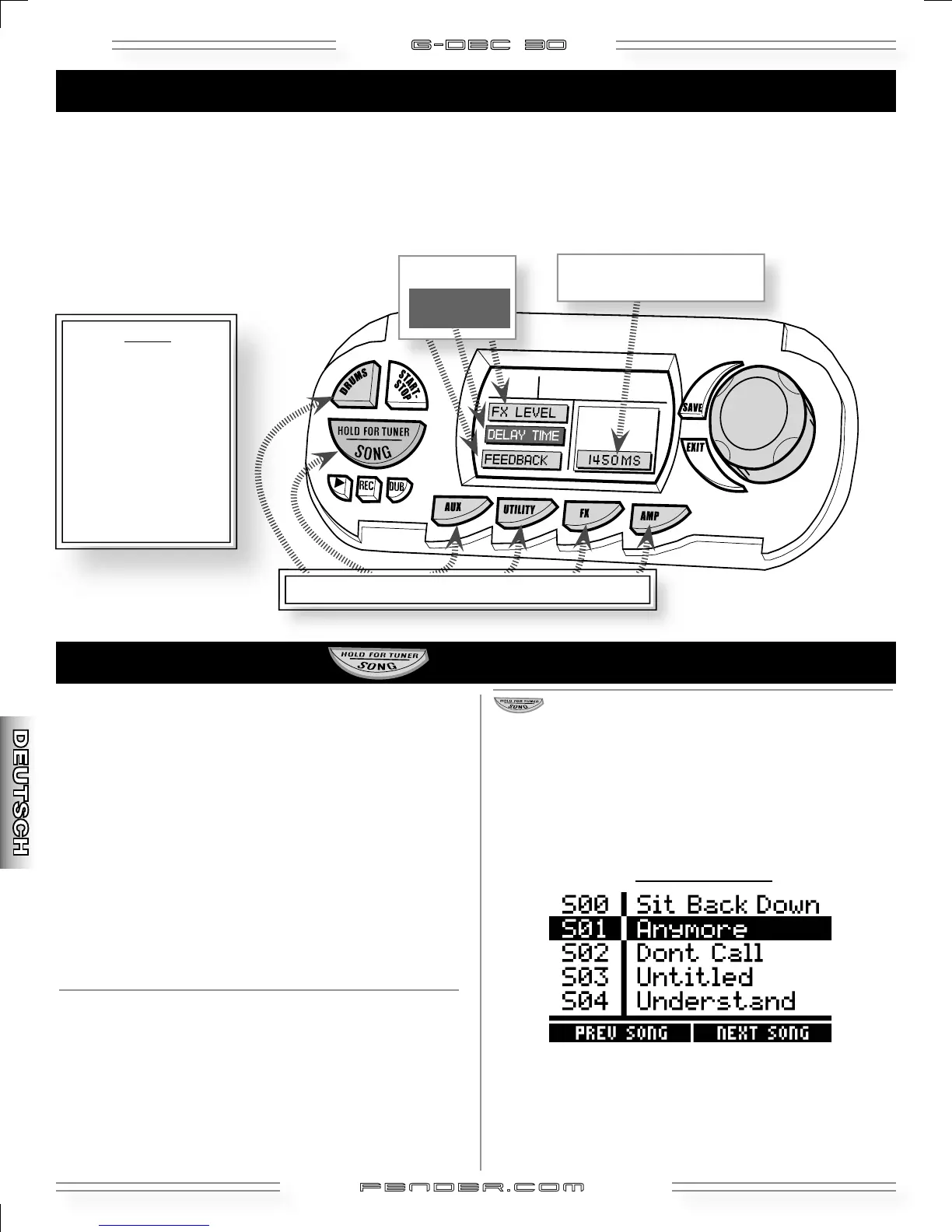 / UTILITY) oder NEXT SONG (FX / AMP), um verschiedene