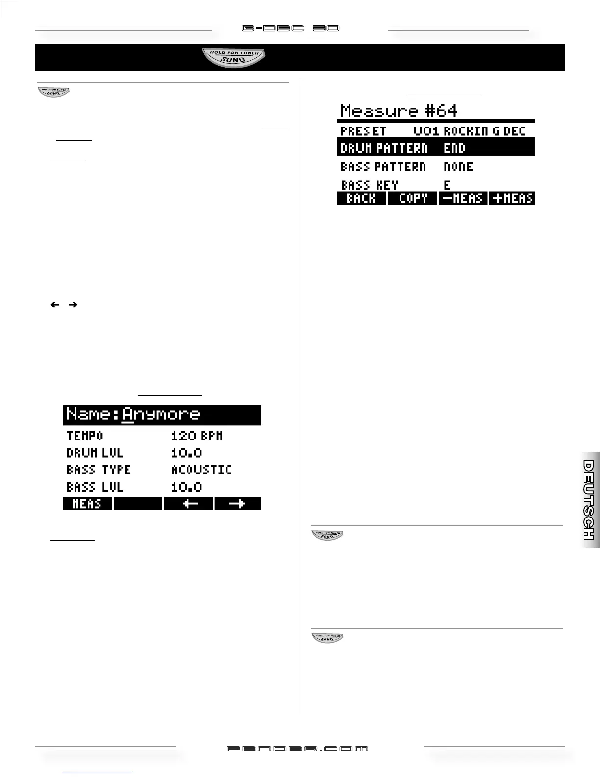 OF SONG wählen, wird der Song am vorherigen Takt be-