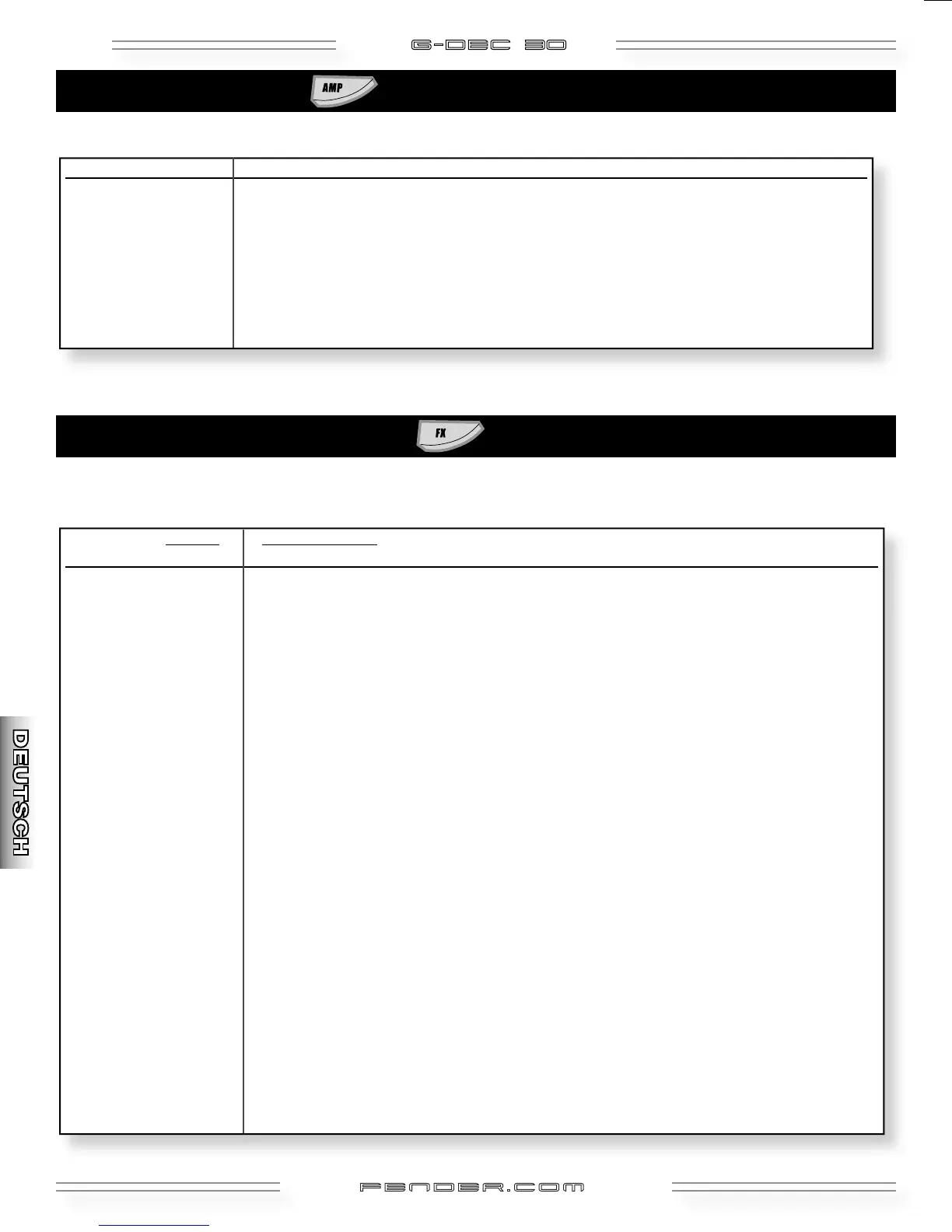 Im Amp-Modus wählt man den Amp-Typ (Menü 1) und modifiziert die Einstellungen dieses Amps mit den Menüs 2–9.
