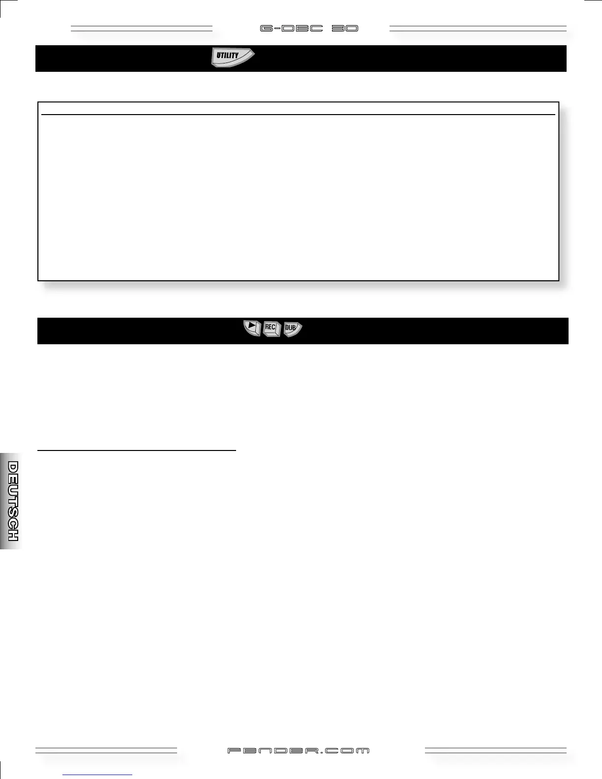 13 FACTORY RESTORE SAVE zweimal drücken — (Stellt alle G–DEC 30 Originaleinstellungen wieder her. SETZT MEMORY LOCK AUSSER KRAFT.)