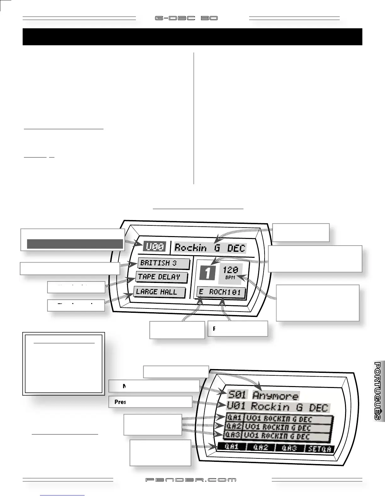 na caixa abaixo). A caixa QA mostra três presets de guitarra