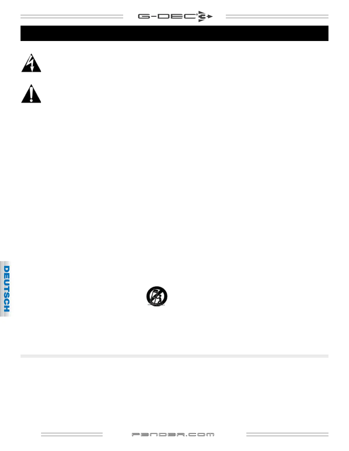 Fender®, G–DEC® , Blackface™, Fender® Fuse™ und Dyna–Touch™ sind Warenzeichen der FMIC.