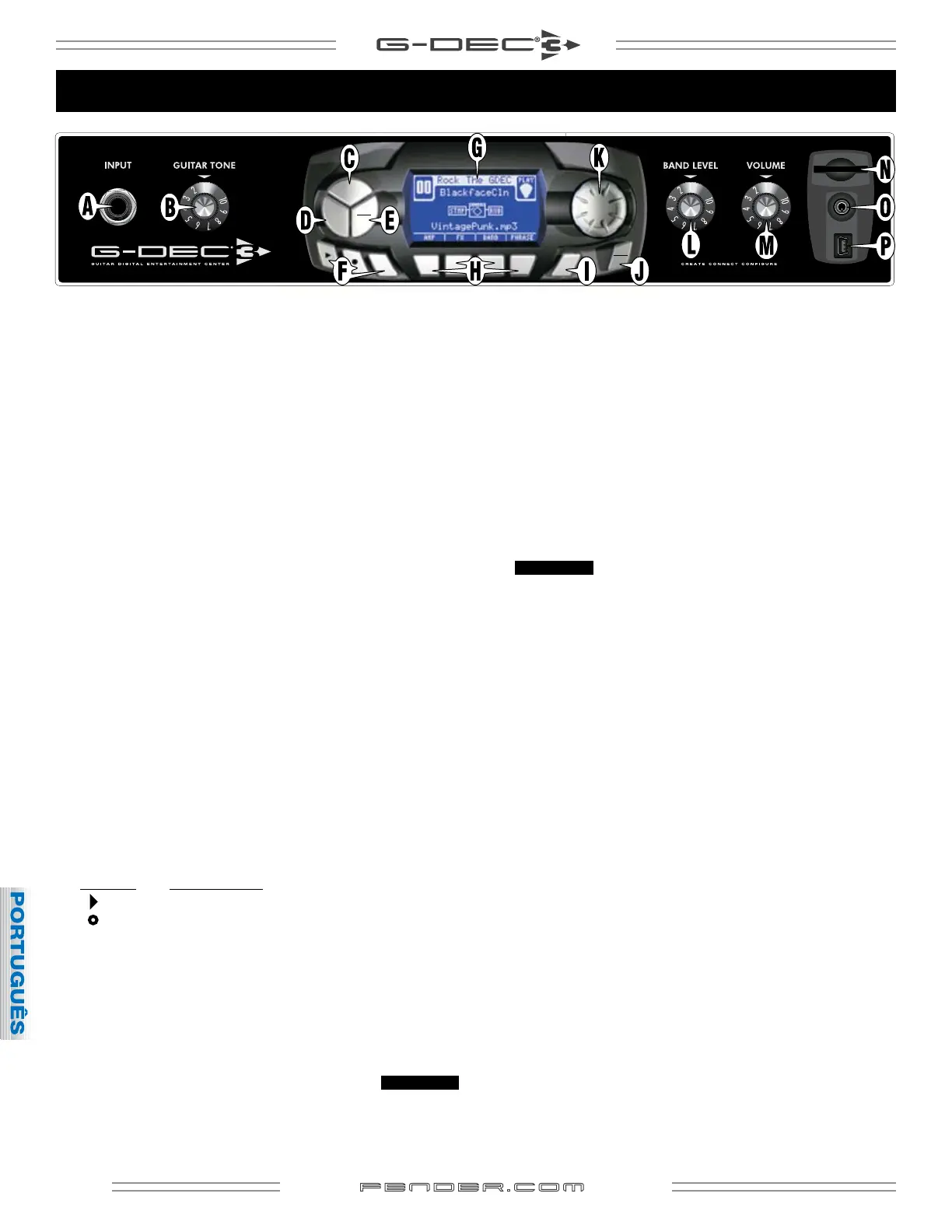 B. GUITAR TONE — Ajusta o timbre da sua guitarra. Isto não afeta o
